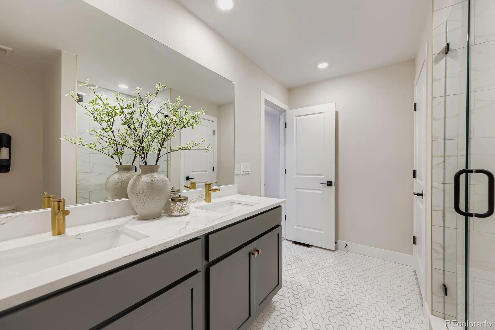 The main living level features an upgraded kitchen with a gas range, stainless steel Whirlpool appliances, white upgrade maple cabinets, sleek quartz countertops, and stylish LVP flooring – perfect for entertaining or everyday living. Each bedroom has its own full bath, including two private ensuites, offering comfort and privacy for everyone. This home is flooded with natural light throughout the day, creating a bright and inviting atmosphere. Enjoy low-maintenance living with premium finishes, stunning views, and direct trail access—all in one of GEOS’ most desirable locations.