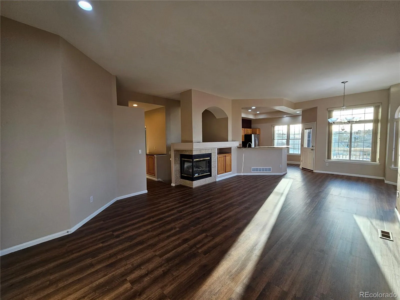 Welcome to this coveted ranch-style townhome in the highly sought-after Coventry Ridge community of Highlands Ranch. Ideally situated at the end of a circular street loop, this home offers enhanced privacy and limited through traffic — a premium location within the neighborhood. This well-maintained 3-bedroom, 3-bathroom residence features a bright and open main level with durable luxury vinyl plank flooring and plush carpet throughout. The spacious kitchen is appointed with granite countertops, abundant cabinetry, and a comfortable dining area perfect for both everyday living and entertaining. Large west-facing windows flood the home with natural light and showcase beautiful Colorado sunsets. The thoughtful layout includes one full bathroom and two ¾ bathrooms, providing flexibility for guests and additional household members. The partially finished basement expands your usable space, ideal for a secondary living area, home office, fitness space, or additional storage. With only one shared wall, this property offers the low-maintenance benefits of townhome living while maintaining a strong sense of privacy. A fenced yard provides outdoor enjoyment, and the attached two-car garage adds everyday convenience. Washer and dryer are included. Located in Highlands Ranch, ownership includes access to four state-of-the-art recreation centers, over 70 miles of scenic trails, community events, farmers markets, and live concerts throughout the year. This is Colorado lifestyle living at its finest. Seller is willing to offer a concession toward flooring replacement in the living room with an acceptable offer. Don’t miss your opportunity to own in one of Highlands Ranch’s most desirable communities.