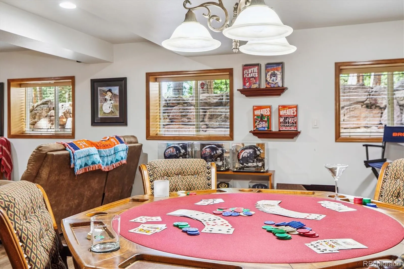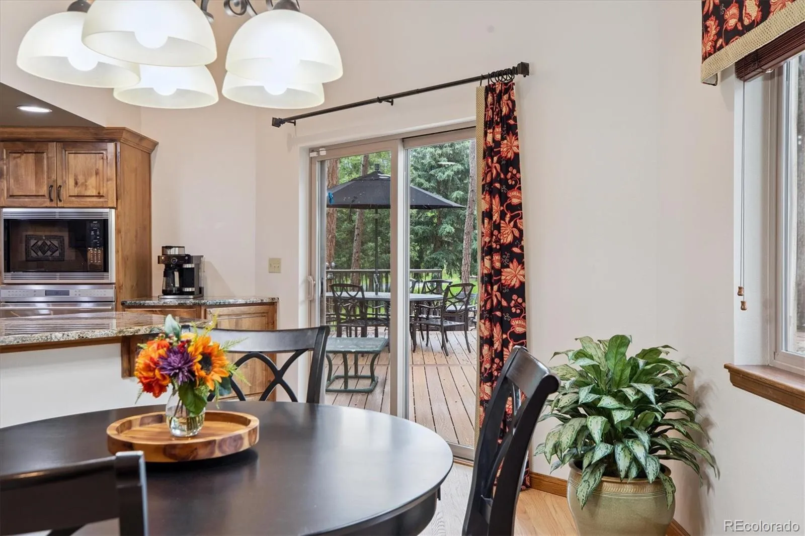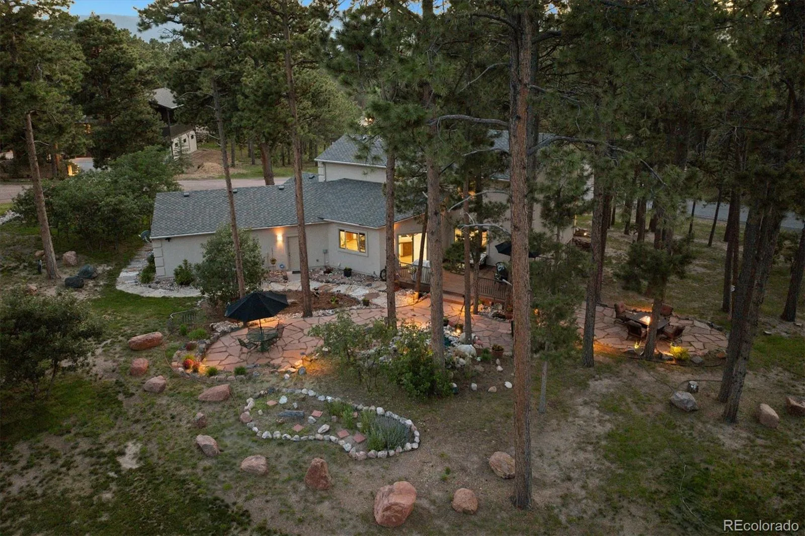 Spectacular Woodmoor Retreat! Nestled on a private, wooded cul-de-sac lot in highly sought-after Woodmoor, this exceptional property offers a rare blend of serene forest surroundings and sun-splashed green meadows, creating a truly park-like setting. Step inside to discover a warm, inviting floor plan highlighted by refinished solid oak flooring, plush new carpet, & high-quality upgrades throughout. The spacious yet private main-floor office provides the perfect setting for working from home or unwinding with morning coffee and a favorite book. The home flows seamlessly into a generous Family Room and a beautifully appointed gourmet kitchen featuring granite countertops, a double oven, gas cooktop, premium Wolf stainless appliances, an expansive center island with seating, a sunlit breakfast nook, a large walk-in pantry, and an elegant formal dining room. A granite wet bar with wine cooler adds a refined touch to the main level. Embrace peaceful Colorado living as you step outside! A stunning rock waterfall and pond create a tranquil backdrop for wildlife watching, while the Trex deck with wrought-iron railings and wraparound flagstone patio offers perfect space for entertaining. Upstairs, the primary suite showcases a newly renovated five-piece bath adorned with marble finishes, a custom oversized shower, stylish dual vanities, a deep soaking tub, and expanded custom walk-in closets. The spacious secondary bedroom features its own walk-in closet and access to a beautifully updated three-quarter bath.The garden-level basement expands your living space with a large game room, flexible bedroom, an impressive granite sports bar, additional three-quarter bath! Additional highlights include a spacious 4 car Garage, newer roof and Milgard Windows! Ideally located just half a mile from The Country Club at Woodmoor, w/18-hole golf course, tennis/pickleball, fitness center, pools, and dining. Close to Tri-Lakes, shopping, parks, trails, downtown Monument, & I-25 and Hwy 83.