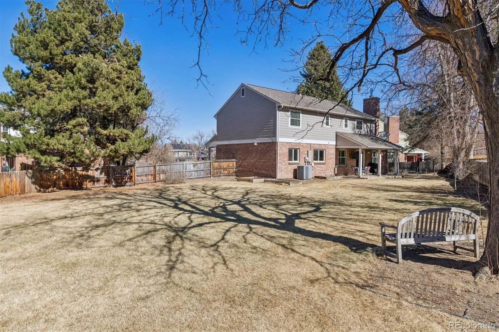The massive backyard oasis awaits, featuring a covered patio for outdoor dining, expansive grassy lawn, mature landscaping, and a rare half basketball court — perfect for active Colorado living. Raised garden beds and a storage shed add even more function and charm to this exceptional outdoor space.