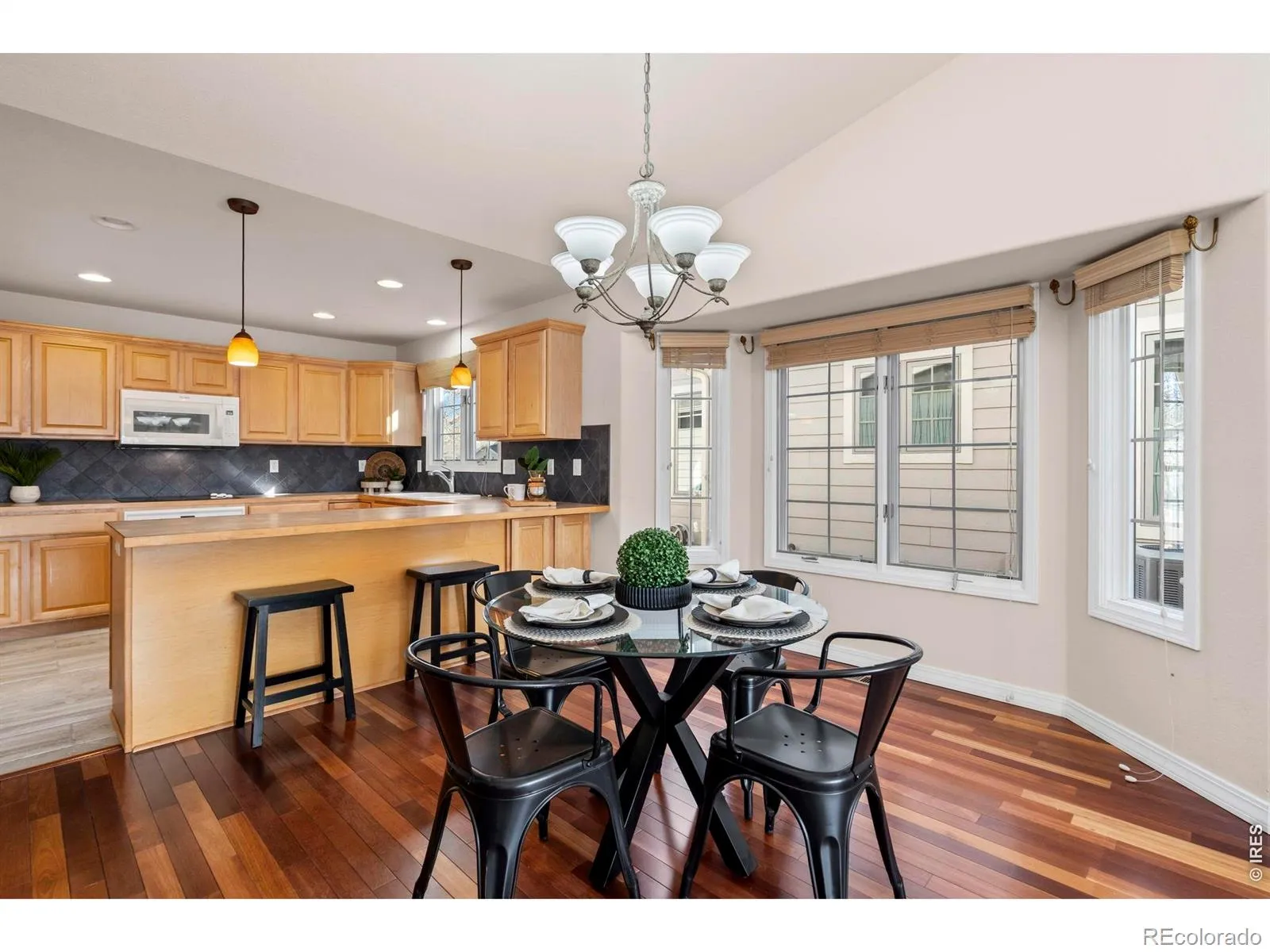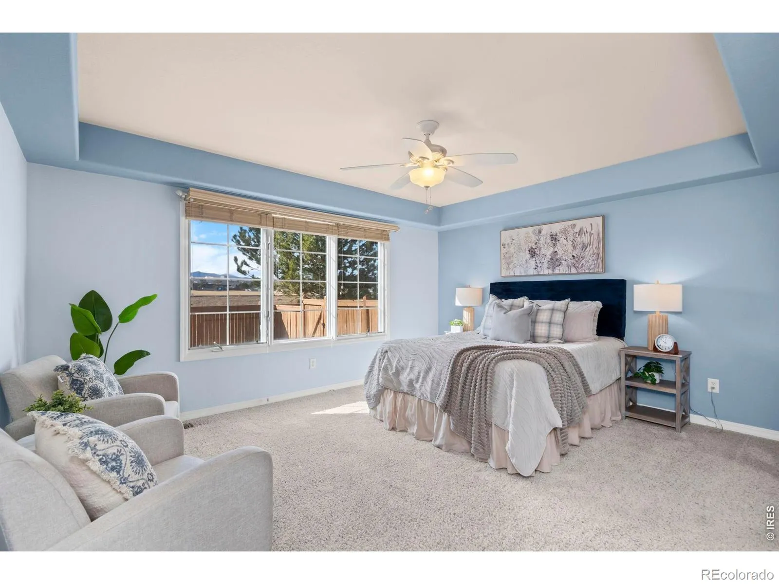 Welcome to this cozy three-bedroom, two-bath townhome located in northwest Loveland. The main floor features a spacious kitchen with tile flooring that opens seamlessly to the dining and living areas, highlighted by warm and beautiful cherry wood floors. From the living room, step out onto the deck and take in the gorgeous mountain views to the west – the perfect backdrop for relaxing evenings. The main-floor primary bedroom offers generous space and convenient access to a shared full bath. A nicely sized walk-in closet provides excellent organization for your wardrobe. Upstairs, you’ll find two additional bedrooms and a full bathroom, offering extra living space for family, guests, or a home office. The unfinished full basement provides ample storage or the opportunity to finish and create additional living space to suit your needs. Enjoy Colorado days and evenings on the deck overlooking the mountains. When the sun gets too warm, simply extend the retractable awning for added comfort.