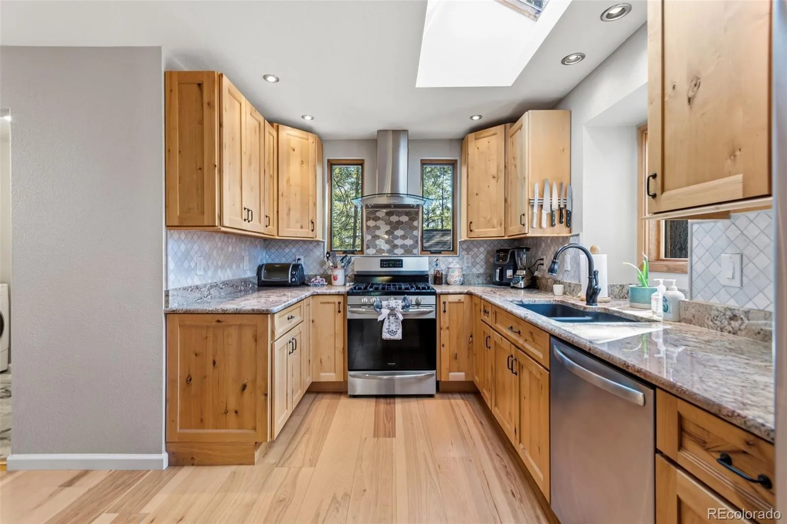 Perfectly positioned on a heavily wooded acre in Sage Port, this beautifully updated three-bedroom residence captures the quiet character of Colorado living beneath towering pines. A gently rising drive introduces the home, where expansive decking and filtered light establish both privacy and presence. Inside, vaulted ceilings and skylights draw natural light across new hickory hardwood floors, giving way to an open great room designed for connection. The recently updated kitchen features slab granite, solid knotty alder cabinetry, stainless steel appliances, and seamless flow to a large deck and adjoining bright and airy sunroom. The private primary suite offers bamboo flooring, vaulted ceilings, built-in storage, dual walk-in closets, deck access, and a refined bath retreat.