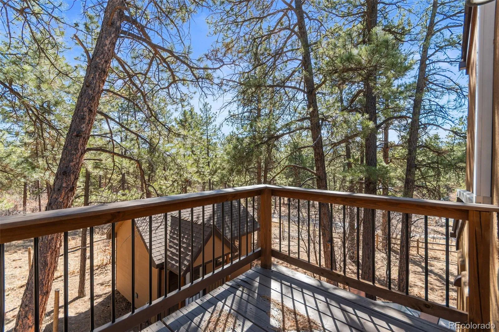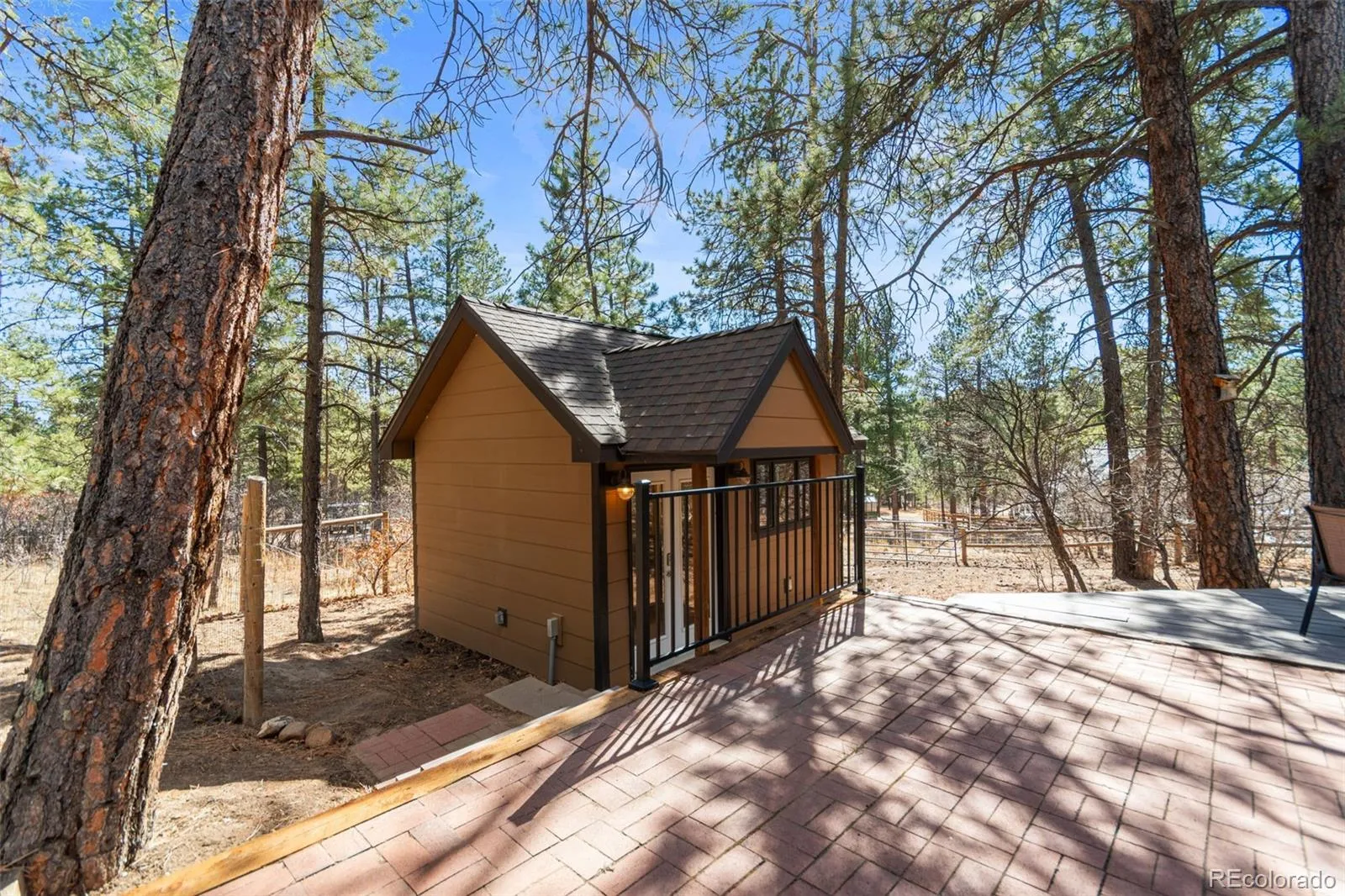 A spacious loft provides an ideal study or home office. Just beyond the main residence, a detached heated studio creates flexible space for creative work, remote business, or family learning. Fully fenced grounds enhance usability, delivering mountain serenity just 30 minutes from the Denver Tech Center and northern Colorado Springs.