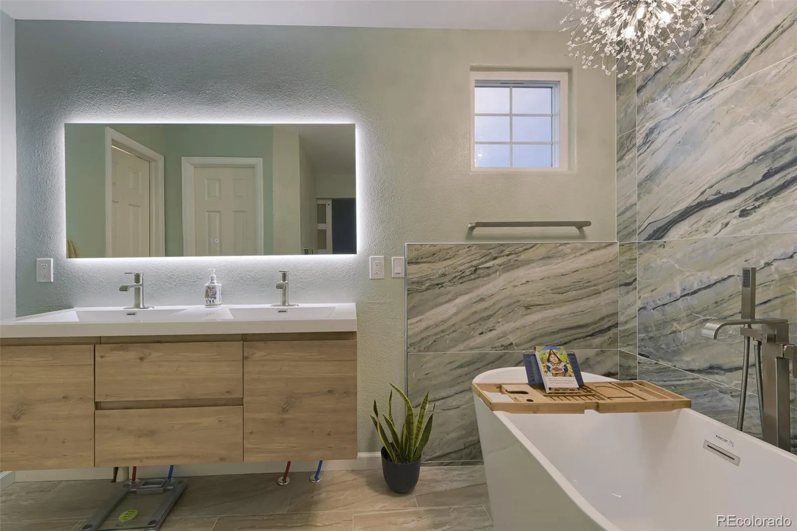 Upstairs, four well-sized bedrooms provide flexibility for sleeping quarters, guest space, or a dedicated home office. The spacious primary suite showcases French doors and a fully remodeled 5-piece bath featuring a walk-in closet, freestanding soaking tub, oversized walk-in shower with luxurious tile, dual vanities, light mirror and modern designer lighting. An updated 3/4 bath serves the additional upper bedrooms.