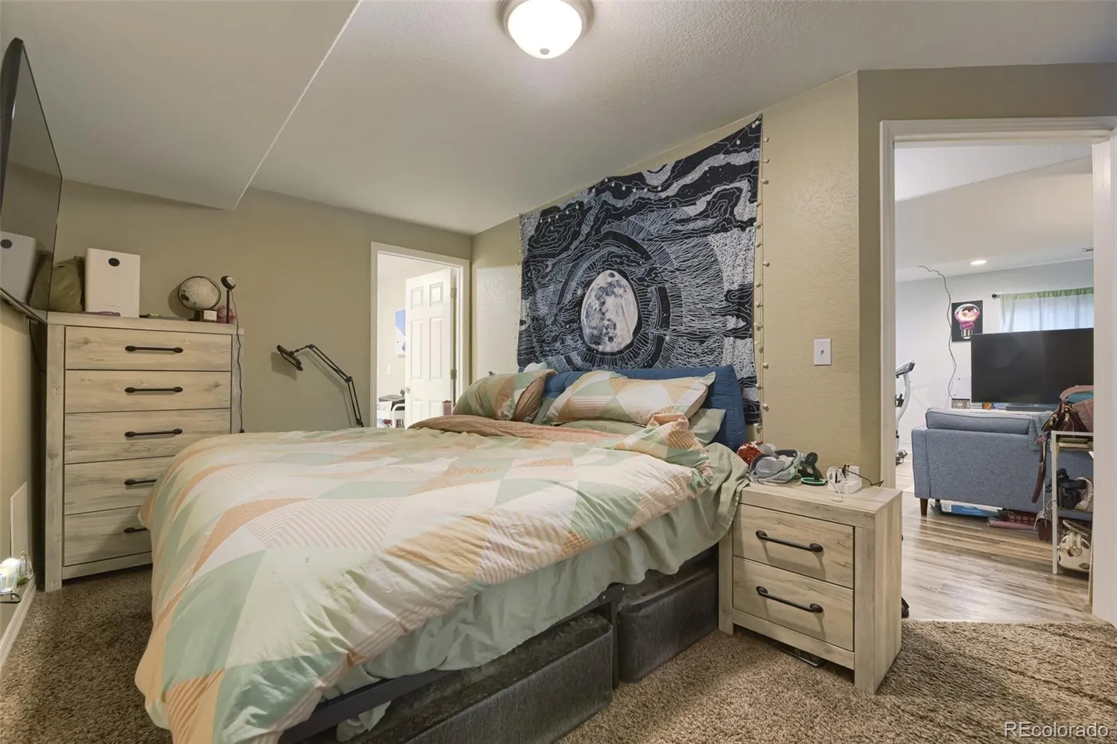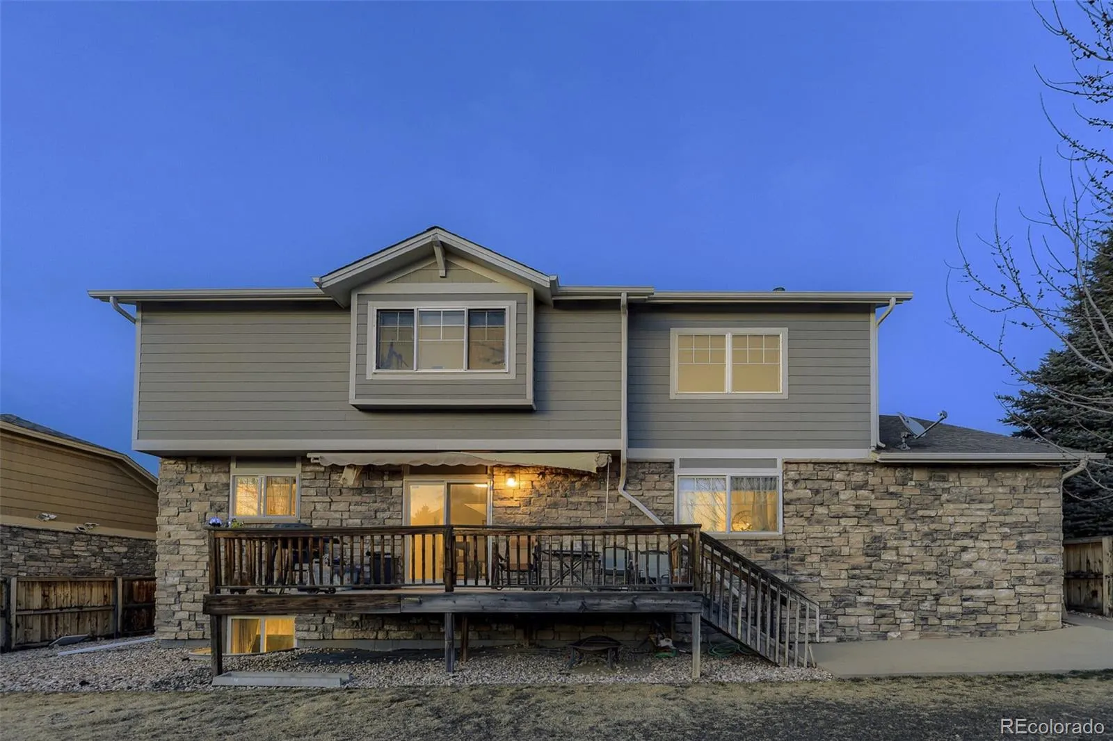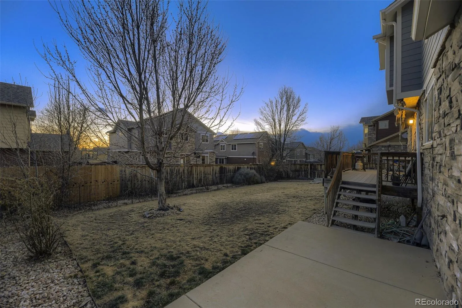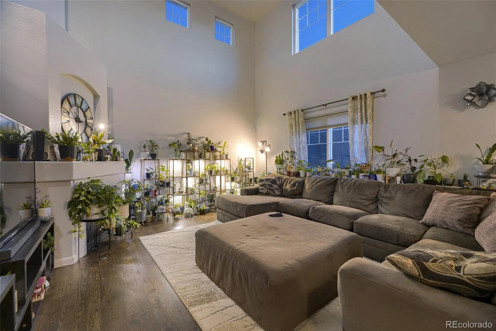 The main level features durable Hardwood flooring, LED lighting, and a stunning vaulted ceiling in the family room that creates an open, airy atmosphere anchored by a cozy gas fireplace. Expansive windows flood the space with natural light, enhancing the inviting feel. The kitchen offers stainless steel appliances, large pantry, generous cabinetry, updated surfaces, and a sliding glass door that opens to the backyard deck, ideal for entertaining, grilling, or enjoying Colorado evenings.