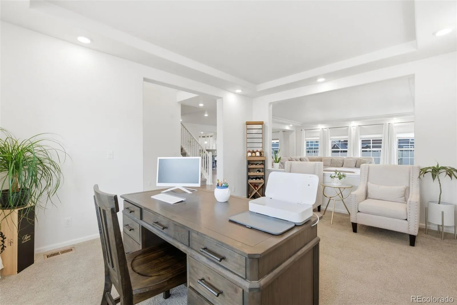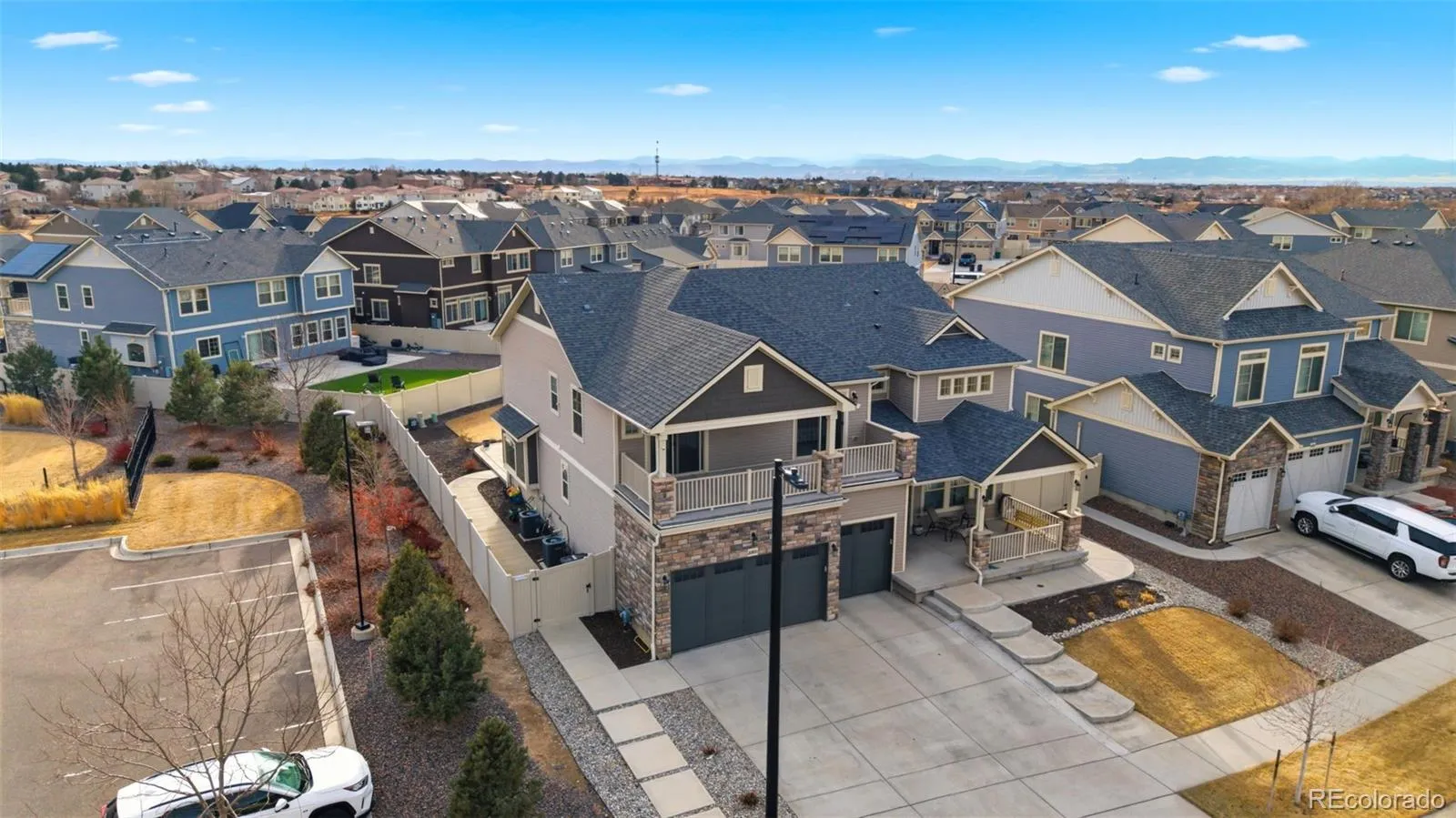 Upstairs, the Boulderado floor plan features a generous primary suite, additional well-sized bedrooms, and a convenient upper-level laundry. A standout highlight is the phenomenal second-story front balcony, ideal for morning coffee or Colorado sunsets. The finished basement adds a large rec room, guest bedroom, full bath, and great storage, while a main-level, light-filled office provides an ideal work-from-home space.