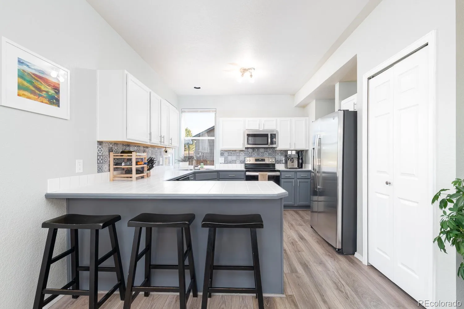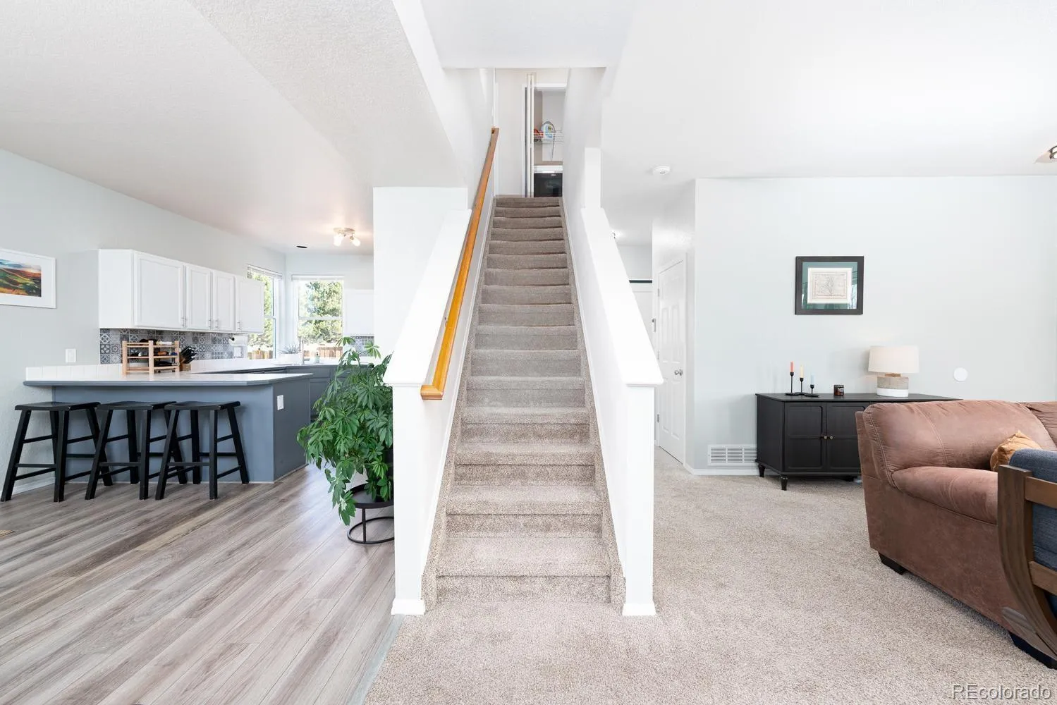 Well-maintained 2-story home in Indigo at Stetson Ridge offering low-maintenance living and practical updates. The living room features a gas fireplace and connects directly to the dining area for functional everyday use. Step out from the dining room onto a nicely sized deck with mountain views and a large backyard, ideal for entertaining. The kitchen includes stainless steel appliances along with ample counter and cabinet space. The primary suite is located upstairs and features a private bathroom and walk-in closet. Two additional bedrooms, a full bathroom, and a conveniently located laundry area complete the upper level. The unfinished basement provides storage or room to expand and includes pre-plumbing to finish out as desired. Conveniently located near shopping, dining, and everyday amenities, with easy access to Peterson Space Force Base and Schriever Space Force Base.