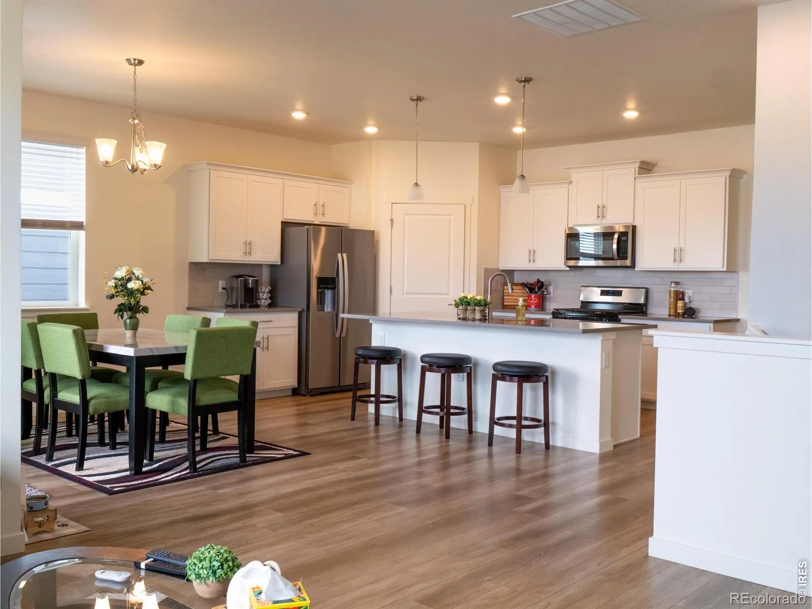 Lots of upgrades and improvements, including extensive backyard concrete work, a storage shed, a fully finished garage, and a beautifully finished basement. Meticulously clean and cared for. This Chatham Ranch plan offers 5 bedrooms, 3 bathrooms, an oversized 2 car garage and an inviting covered back patio. Backing up to serene green space with sweeping city views from its hilltop setting. Step inside to discover an open concept layout that seamlessly connects the living room, kitchen, and dining area, ideal for both everyday living and entertaining. The home showcases rich, contemporary finishes including white cabinetry with crown molding, stunning quartz kitchen countertops, stainless steel gas range, microwave, dishwasher, fireplace, and durable laminate wood flooring throughout most of the main level.Built with comfort, style, and innovation in mind, this home includes premium features such as an 8′ front door, 2-panel interior doors, air conditioning, tankless water heater, and 8′ tall garage doors with smart openers. The fully finished basement expands your living space with a second primary suite featuring double closets, a beautifully appointed 3/4 bath with tiled shower, a built-in wet bar, an expansive great room, and a massive storage area. The outdoor upgrades truly set this property apart, including: the oversized, finished 2-car garage with epoxy floors and built-in ceiling storage racks for maximum functionality. A poured cement path along the side and backyard, a custom-built storage shed, and a covered patio with wind protection – perfect for enjoying the incredible views year round. Residents enjoy access to multiple on site parks, picnic areas, playgrounds, and scenic walking paths throughout the community.This exceptional home combines thoughtful design, premium upgrades, and breathtaking views. A rare opportunity you won’t want to miss.