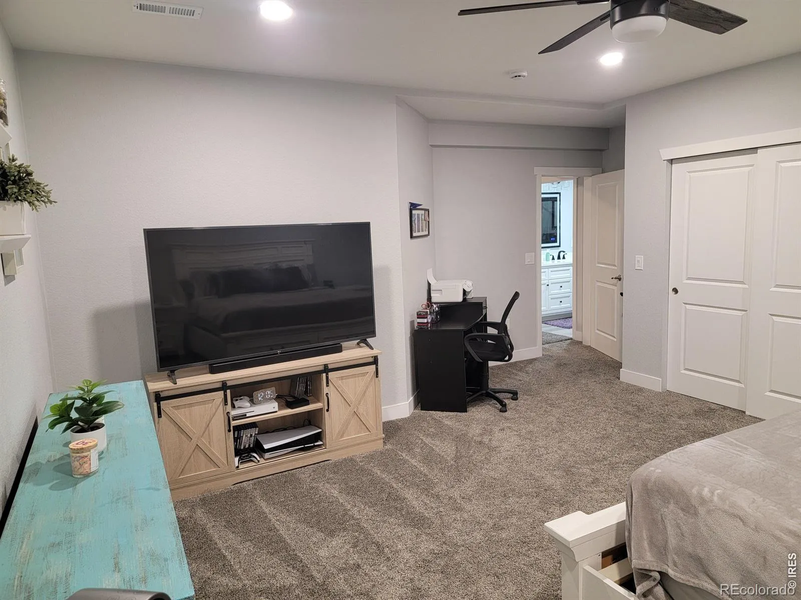 Meticulously clean and cared for. This Chatham Ranch plan offers 5 bedrooms, 3 bathrooms, an oversized 2 car garage and an inviting covered back patio. Backing up to serene green space with sweeping city views from its hilltop setting. Step inside to discover an open concept layout that seamlessly connects the living room, kitchen, and dining area, ideal for both everyday living and entertaining. The home showcases rich, contemporary finishes including white cabinetry with crown molding, stunning quartz kitchen countertops, stainless steel gas range, microwave, dishwasher, fireplace, and durable laminate wood flooring throughout most of the main level.Built with comfort, style, and innovation in mind, this home includes premium features such as an 8′ front door, 2-panel interior doors, air conditioning, tankless water heater, and 8′ tall garage doors with smart openers. The fully finished basement expands your living space with a second primary suite featuring double closets, a beautifully appointed 3/4 bath with tiled shower, a built-in wet bar, an expansive great room, and a massive storage area. The outdoor upgrades truly set this property apart, including: the oversized, finished 2-car garage with epoxy floors and built-in ceiling storage racks for maximum functionality. A poured cement path along the side and backyard, a custom-built storage shed, and a covered patio with wind protection – perfect for enjoying the incredible views year round. Residents enjoy access to multiple on site parks, picnic areas, playgrounds, and scenic walking paths throughout the community.This exceptional home combines thoughtful design, premium upgrades, and breathtaking views. A rare opportunity you won’t want to miss.