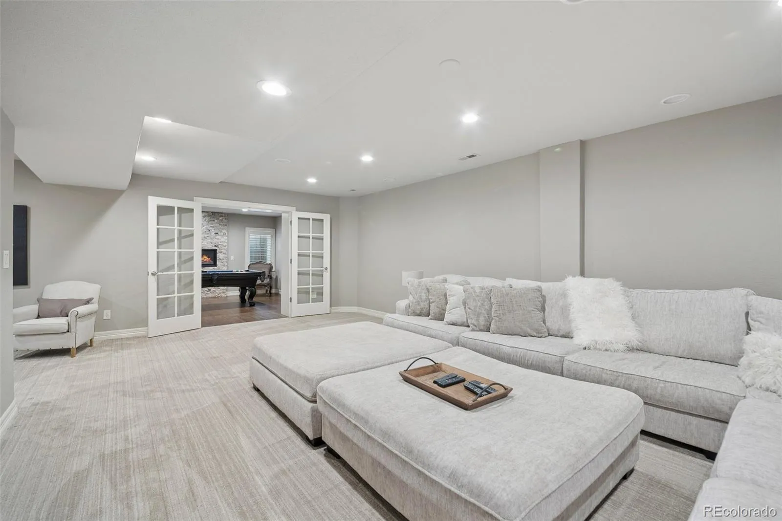 The finished lower level adds over 1,800 square feet of flexible living, complete with private garage access, wet bar, billiards space, fitness room, and a separate living area designed for guests or multigenerational use.