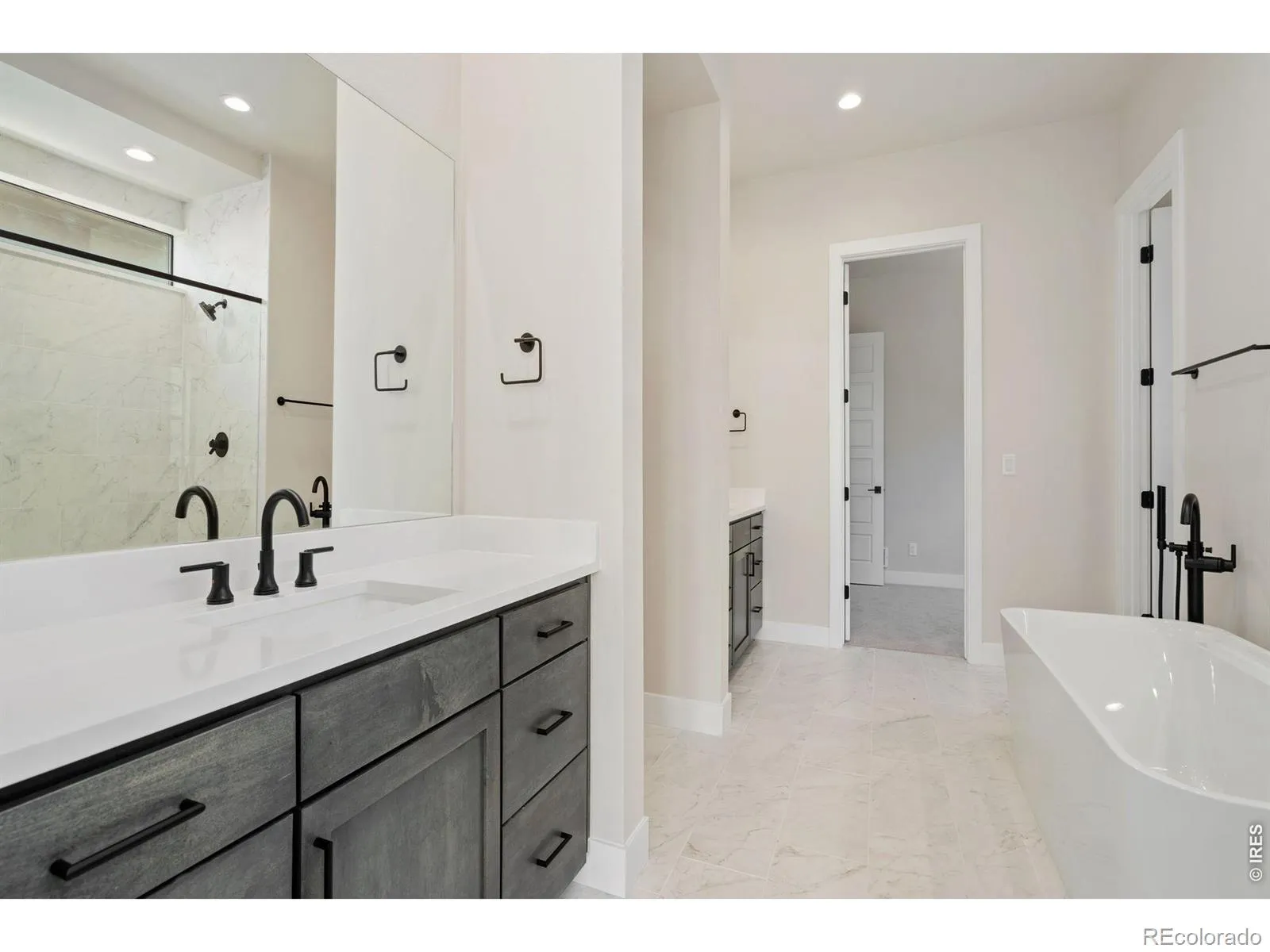 The Isleworth Plan at The Fairways at RainDance by Trumark Homes is a stunning single-story home with 4,869 sq. ft. of finished space, 4 bedrooms, 4.5 baths. Backing to Raindance National golf course with a partial finished walk out basement, this home is amazing. Adjacent to the formal entry is the office with a glass wall and door. Continue on to find a spacious dining area with stained ceiling beams and a chef’s dream kitchen with walk-in pantry, bench and cubbies and an oversized island. Enjoy deluxe white and sage shaker style stacked cabinetry , Calcatta Classique quartz countertops with tile backsplash, Pro Thermador stainless appliances including 48″ gas range with hood and 30″ fridge and freezer. The great room, complete with a modern linear gas fireplace to keep you cozy in the winter, is filled with natural light and overlooks the covered outdoor deck, allowing stunning views of the high-plains links-style golf course at RainDance National. At the end of a long day, retreat to the grand suite with luxurious spa like bathroom, walk-in shower, and an elegant freestanding tub. An expansive walk-in closet and generous fitness room complete the primary suite. On the other side of the home you’ll find the spacious laundry room with sink and expansive cabinetry, a secondary sitting room and two bedrooms both with private ensuite baths and walk-in closets. The finished basement with 10-foot ceilings and 8-foot doors includes a rec room and wet bar, a large patio with center meet sliding glass door, and an additional bedroom and bath. The home also includes insulated steel garage doors, tankless water heater, AC, full landscaping with fencing, golf cart garage, and much more. Amenities; 15 miles of trails, orchards, trash/recycling included in $300.00/yr. Membership to the Raindance pool is optional at $510/year. Trumark Online Sales Counselor, Brooke Bails, can be reached at 720.556.8422 or [email protected]