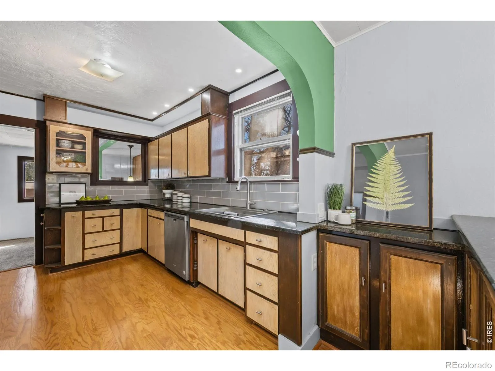 Own a little piece of Longmont history with this charming all-brick 1928 bungalow in the heart of Old Town. A stunning stone chimney, stone pillars, and a wide front porch with wrought-iron railing create unforgettable curb appeal. A new roof and gutters will be installed before closing and a one-year home warranty is included for added peace of mind. The home offers direct alley access to the rear attached garage, complete with a large workshop and generous driveway parking out front. Inside, the main level features a warm living room accented by a stone wall and wood-burning stove, plus a well-appointed kitchen with abundant cabinetry, granite counters, a large sink, and a built-in island. The spacious primary suite features wood floors and a newly added full bathroom. A second main-level bedroom also includes its own full bathroom. A separate front entrance opens into an additional bedroom or potential office with a plumbing rough-in, creating an ideal setup for an in-home business. The finished basement expands the living space with a large bedroom, bathroom, rec room with wet bar area, and a sizable unfinished storage/flex room that connects to the garage workshop. An enclosed back porch offers endless possibilities for hobbies, relaxation, or additional living space. The fully fenced backyard includes an expansive stone patio, decorative stone wall, garden bed area, storage shed, and a separate area previously set up for chickens. With ample room to add an ADU (mother-in-law suite), the property offers excellent flexibility and future potential. Located just moments from Roosevelt and Thompson Parks, Sunset Golf Course and pool, and the restaurants and amenities of Main Street, this home blends historic charm with modern convenience.