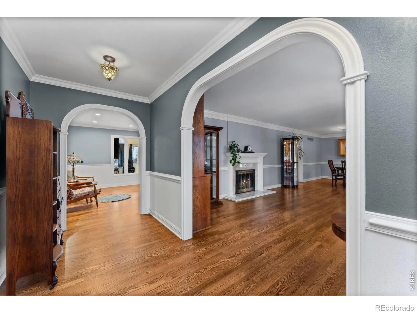 Experience the perfect blend of space, comfort and timeless style in this Tudor home that is thoughtfully designed for multigenerational living. When stepping in, you will be greeted with stunning hardwood floors and elegant craftsmanship, including arched entryways, crown molding, and custom kitchen cabinetry. Enjoy the spacious living room, dining room, and sunroom, which features two fireplaces that add to the charm and cozy ambiance. With an extra side entrance to the basement, you will find a bedroom, bathroom, rec area, kitchenette, and a large flex area with storage and room for expansion and imagination. Upon entering the second floor, you will find a bedroom/bonus room that includes a partial bathroom which can be a great area for separate living space. The unfinished attic also provides unique opportunities for an extra room and entertainment space. Enjoy the short distance to Benson Sculpture Park and North Lake Park where you can experience Loveland’s art culture, beauty, and traditions! The Beautiful Olde Course at Loveland is adjacent to the neighborhood and Cattail Creek Golf Course is a short distance as well.