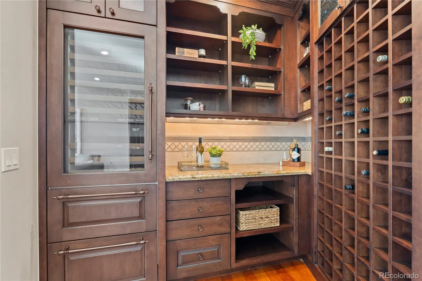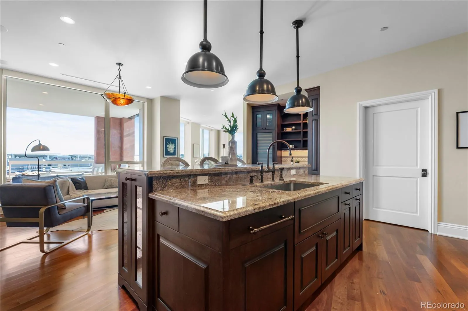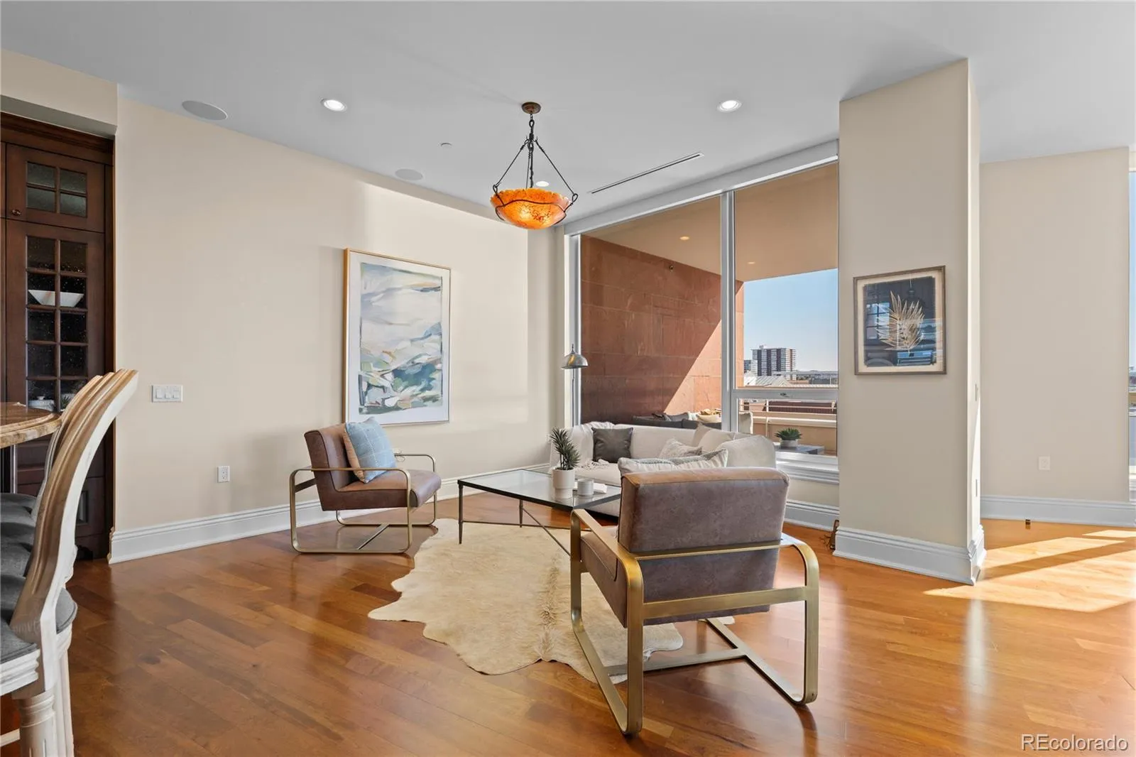Exceptional Mountain Views in Prime Cherry Creek North! Located within NorthCreek—Cherry Creek North’s only private, gated & full-service enclave, this stunning Southwest corner residence offers nearly 3,000 Sq Ft of beautifully designed living space, featuring 2 beds plus an office & 2.5 baths. The oversized foyer sets an elegant tone from the moment you enter, while floor-to-ceiling windows draw your gaze to sweeping mountain views, filling the home with natural light & creating a breathtaking backdrop for daily living. The formal living & dining rooms are framed by expansive windows & anchored by a double-sided fireplace—a striking centerpiece. The dining room w/ its luminous ambiance, feels like a private jewel box designed for unforgettable evenings. The designer chef’s kitchen boasts top-of-the-line appliances, a grand 2-tiered island & oversized walk-in pantry. Custom enhancements include a built-out bar w/ floor-to-ceiling wine storage, separate wine cooler & mini beverage fridge. The kitchen opens seamlessly into the family room, a cozy retreat for quiet evenings. Enjoy warm afternoon light on the covered balcony, ideal for year-round dining, lounging or grilling. The primary suite is a true sanctuary, generously sized to accommodate a seating area features a spa-inspired en-suite bathroom w/ a large soaking tub, elegant vanity & custom walk-in closet. The guest suite includes its own walk-in closet & private bath, ensuring comfort & privacy for visitors. A dedicated office w/ wide French doors integrates seamlessly into the home’s living space. Additional features include a well-appointed laundry room w/ built-ins & sink, automatic shades throughout & 2 reserved parking spaces in a secure garage. With 24-hour concierge services, NorthCreek offers the ultimate low-maintenance, lock-and-leave lifestyle—just steps from the world-class dining, luxury boutiques & art galleries of Cherry Creek North.