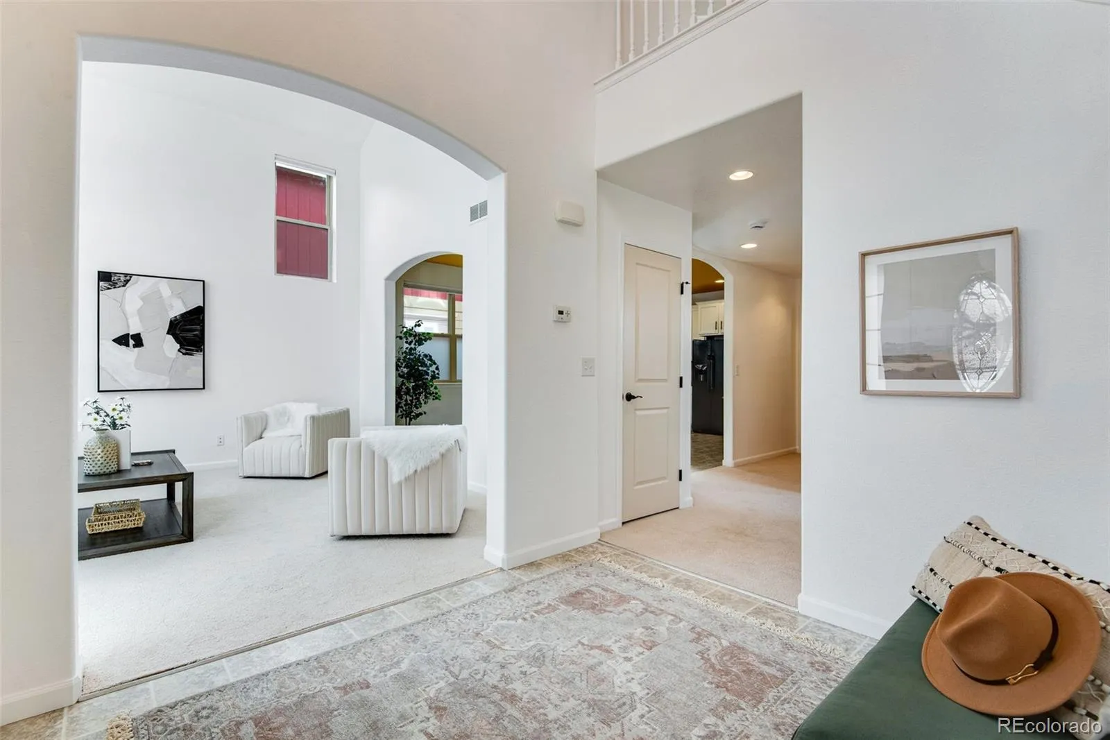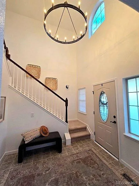 Vibrant, light-filled east facing Patio Home in convenient Gateway Park resting on a corner lot with sparkling Mountain Views from the upper level! This beauty abuts HOA landscaping to the east + just down the street from the community park with easy access to Hwy 287 & the newer Berthoud Rec. Center! Prime location in the heart of Gateway Park, Pride of Ownership shines inside + out with an expansive covered front porch – and welcoming Soaring ceilings in both the foyer and main living area (convenient upper remote blinds in the main living area -all newer cordless blinds.) Low maintenance vinyl fencing with 3 easy access gates, irrigation lines in both patio areas (to the west and to the north) – gaze out to the landscaped open space to the east and enjoy the private yet tranquil west side patio features both covered and non-covered areas. North side patio is curated for veggies, irrigation lines and standing beds, a perfect fit for the Colorado gardener that would like a low maintenance situation, but still loves to work in the yard. West Patio features a healthy producing dwarf cherry tree, concord grapes, strawberries and loaded with pretty Colorado perennials! Fresh interior paint around 3 years ago, newer AC 2019/2020 & freshly painted cute white shaker cabinetry (with roll-outs on the bottom shelving.) in the eat-in kitchen, added vented fin over the range, full tile backsplash. Exceptional location for easy commuting with stellar amenities all around! 3 Bedrooms & 3 Baths, (2 being Ensuite upstairs, all have their own walk-in closet!) 3 Baths feature oversized showers w/ poured pan floors + updated tile work) main level Bedroom + 3/4 bath, Class IV roof 2016. Spacious Unfinished basement w/blanket insulation, plumbing rough-in + active radon mitigation. No Metrodistrict, reasonable HOA at $407/Quarter covers trash, common area and common area snow removal and non-potable irrigation water! This sanctuary is all about beauty + convenience!