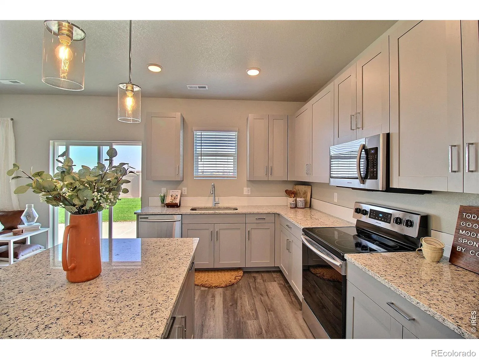 Builder offering up to $6,000 seller concession with use of a preferred lender. This open concept 2-story home features a spacious kitchen with a large pantry and kitchen island, with plenty of storage and natural light throughout. The upper- level features a laundry room, primary suite with walk-in closet, 3 additional bedrooms, and a loft space. Standard features include LED lights, tankless water heater, LG stainless steel kitchen appliances, covered entry, front landscaping, and an insulated, drywalled, and heated 2-car garage with garage door opener. Upgrades include kitchen island, quartz countertops throughout, gas range,refrigerator, 42″ upper cabinets, and a LED disc light package in the great room.