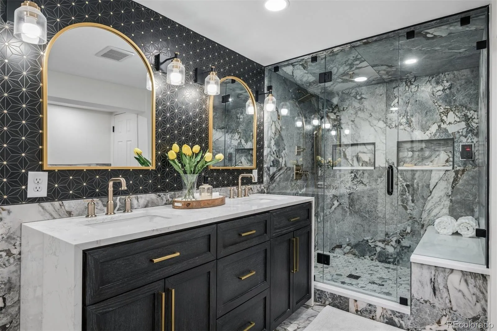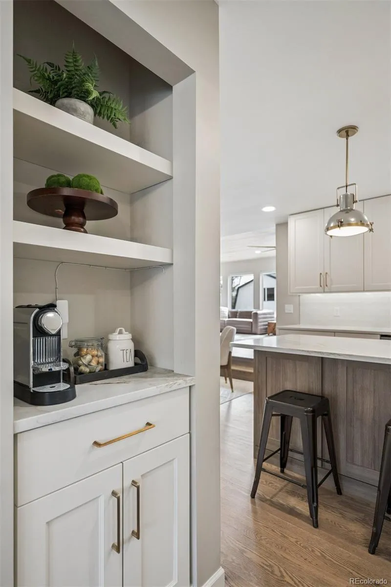 This stunning fully renovated Littleton home has been completely transformed over the past two years with over $1 million in upgrades and a beautiful 1,135 sq. ft. addition, bringing the total finished space to 4,621 sq. ft. Designed for both luxury and functionality, the home features a show-stopping remodeled kitchen with quartz countertops, custom cabinetry, high-end KitchenAid appliances, 48” gas range, three ovens, massive island, and coffee bar. Thoughtfully updated living spaces include new flooring, paint, lighting, a gas fireplace, a private office, a large pantry, two laundry rooms, and a bright Colorado sunroom with beetle-kill wood ceilings and dedicated heating and cooling.