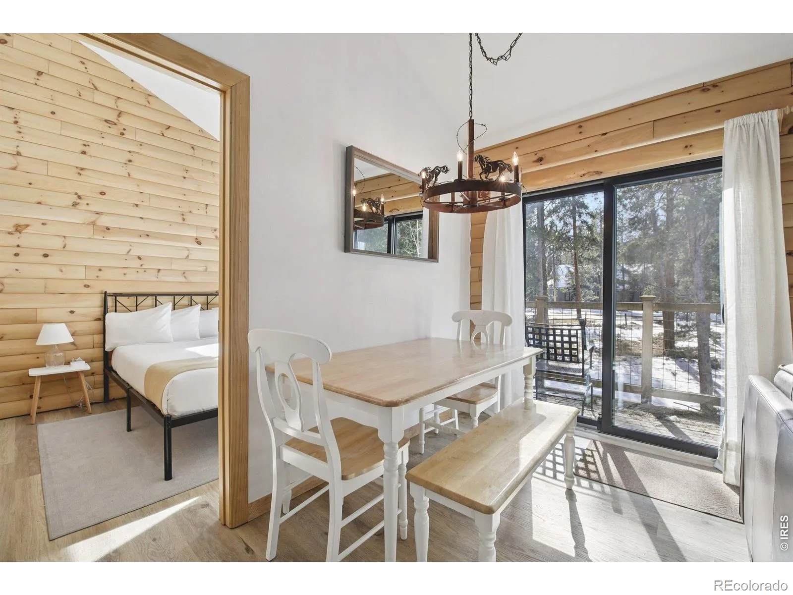 Tucked among mature ponderosas in the heart of Summit County, this beautifully upgraded mountain contemporary condo blends comfort, style, and easy alpine access. Located in the Soda Ridge community, this 2-story end unit offers 735 square feet of thoughtfully designed living space with west facing exposure, serene mountain views, and convenient access to year round recreation. Vaulted ceilings and new expansive windows create a bright, open feel, complemented by new luxury vinyl plank flooring adding a modern, durable finish suited for mountain living. The inviting living area features a cozy fireplace, perfect for relaxing after a day on the slopes or trails. The updated kitchen features solid surface counters, sleek appliances, while the dining area is open to the living room with a new glass slider to access the balcony. The main level offers a bedroom and upgraded full bath. Upstairs is the 2nd bedroom (non-conforming) providing flexible accommodations for guests or work from home needs. The private balcony extends the living space outdoors, surrounded by peaceful wooded views. Take advantage of all of the recent improvements enhancing comfort and functionality. Includes: new windows, interior paint, luxury vinyl plank flooring, blinds, sliding door, roof replacement, and gas added to the fireplace. A ski locker by the entry adds convenience. Property includes 2 reserved off street parking spaces and has a comprehensive HOA covering cable, internet, water, sewer, snow removal, insurance, and exterior maintenance for true lock and leave ease. Community amenities include a pool, sauna, hot tub, grilling areas, and a free ski shuttle service making access to the surrounding 6 resorts effortless. Ideally located near dining, shopping, golf, public transit, and miles of trails, offering exceptional access to skiing, hiking, and biking. Ideal as a primary residence, mountain getaway, or investment opportunity in a coveted recreation area. See virtual 3-D tour.