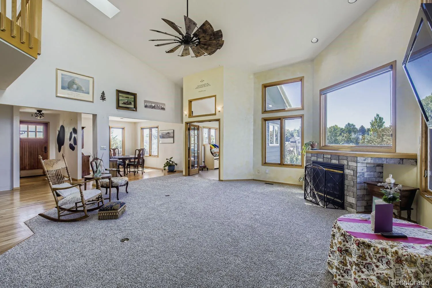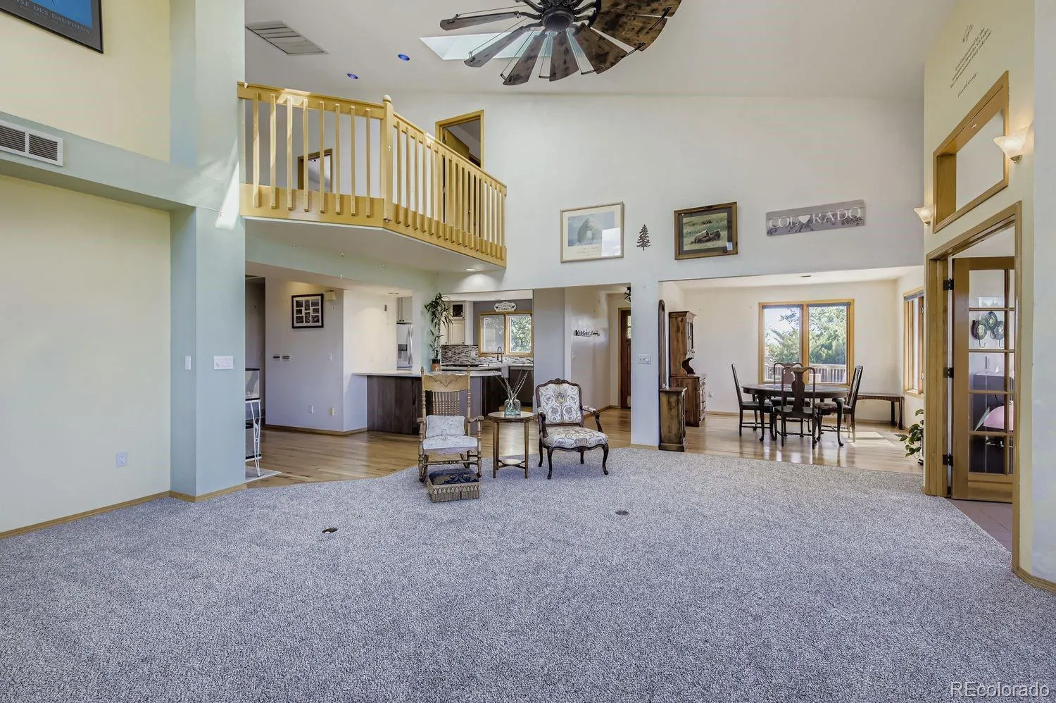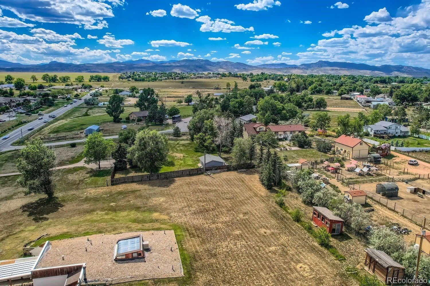 Enjoy true Colorado living on 1.5 acres with stunning Front Range views, no HOA, no Metro District, and rare FA1 zoning-bring your horses, goats, and chickens. Located just 5 minutes from I-25, this property offers peaceful country space with easy access to everything.This versatile 5-bedroom, 3-bath home is ideal for multi-generational living, featuring a fully finished walk-out basement with private entrance, full kitchen, family room, two bedrooms, and a 3/4 bath-perfect for extended family or rental potential.The light-filled great room showcases soaring ceilings, expansive windows framing the mountains, and a gas fireplace. The updated kitchen features quartz countertops, farmhouse sink, wall ovens, gas cooktop island, and two-tone cabinetry. A main-level bedroom and full bath add flexibility, while upstairs offers two bedrooms, a loft, and another full bath.Enjoy sunsets from the spacious upper deck or relax on the shaded patio below. Additional highlights include owned solar, newer roof and HVAC, oversized garage, RV parking, and mature landscaping.A rare blend of acreage, views, and flexibility-ready for modern Colorado living.