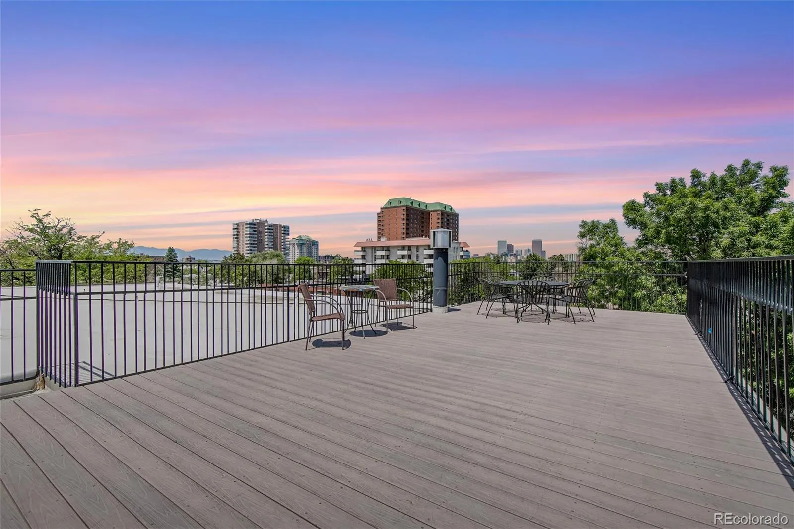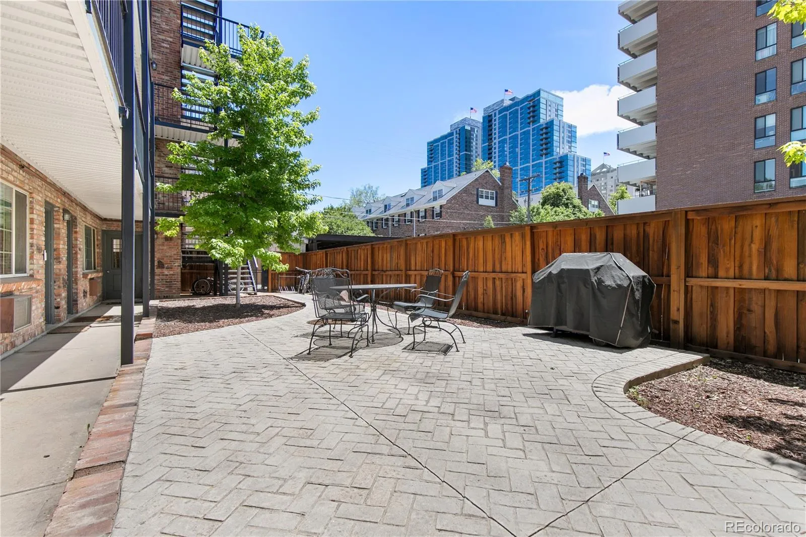 This condo has a secured gated main entry that leads to a beautiful courtyard with new pavers, grill and seating under the shaded by mature trees, while the shared rooftop deck delivers a true lifestyle moment — imagine sunset views and relaxed conversations, in the glow of the Denver skyline. HOA includes heat, building maintenance, and off-street parking, creating a low-maintenance lock-and-leave experience.