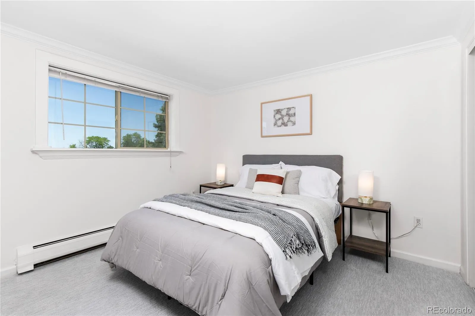 ***1% Lender credit available! Trendy 2-story, 2-bedroom condo in the heart of Wash Park offering city living w/ both skyline and mountain views. Sunlight pours into the open-concept layout, highlighting warm wood floors and a design that feels equal parts modern and inviting. The Kitchen w/it’s granite tile countertops, stainless steel appliances, and a generous island is perfect for casual gatherings before a night out or a quiet evening at home. Fresh, neutral carpeting, crown molding, and curated wall sconces add subtle character throughout. Upstairs, convenience meets comfort w/ in-unit laundry and two bright, thoughtfully designed bedrooms. The primary retreat features a spacious closet and sliding glass doors that open to a private covered balcony—an ideal spot for morning coffee or winding down after a day in the city. Both bathrooms are beautifully updated w/ ceramic tile and granite vanities, offering a clean, timeless look. An oversized walk-in storage closet tucked beneath the stairs keeps everyday living organized and effortless, perfect place to store some of your Colorado toys! This condo has a secured gated main entry that leads to a beautiful courtyard with new pavers, grill and seating under the shade by mature trees, while the shared rooftop deck delivers a true lifestyle moment —imagine sunset views and relaxed conversations, in the glow of the Denver skyline. HOA includes heat, building maintenance, and off-street parking, creating a low-maintenance lock-and-leave experience. Perfect location with friendly neighbors. Just blocks from Wash Parks concerts, farmers markets, boutique fitness studios, breweries, coffee shops, dog parks, and community pools —with easy access to bike paths, light rail, museums, and downtown — this condo blends neighborhood charm with a vibrant urban rhythm. Whether you’re heading out for brunch, or a workout, catching a show, or enjoying a spontaneous evening in the park, everything you love about Denver is right here.