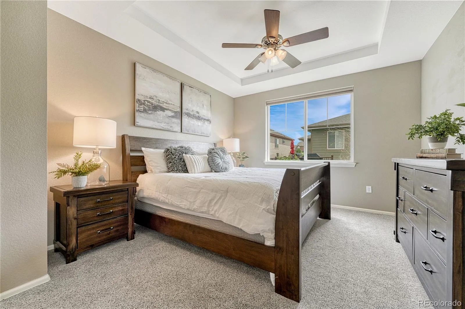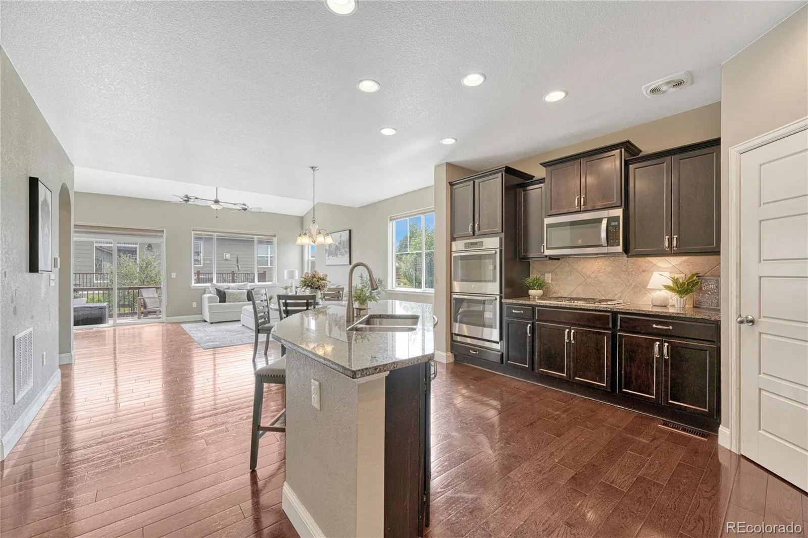 VETERANS! Assumable VA Loan at 3.99%! Welcome home to this beautifully maintained 6-bedroom, 5-bath home. With a main floor primary suite and a fully finished basement designed for multigenerational living, this home truly has it all! At the heart of the home, the kitchen was built for gathering. Featuring granite countertops, a spacious center island, gas cooktop, double ovens, custom backsplash, and a generous pantry, it’s a space that makes everyday living and entertaining a breeze. The kitchen flows seamlessly into the family room, where a gas fireplace with custom tile surround creates a welcoming focal point. Host dinners in the formal dining room with hardwood floors and classy wainscoting. The main floor primary suite offers coffered ceilings and convenient access to the laundry room. The five-piece ensuite bath features dual vanities, a separate water closet, a soaking tub perfect for unwinding, and an oversized walk-in closet designed for organization. Upstairs, a spacious loft provides the perfect flex space. One bedroom enjoys its own private bath, while two additional bedrooms share a bathroom with double sinks. The finished basement provides a secondary living area complete with a full kitchen (refrigerator included), family room, full bathroom, and two bedrooms—ideal for guests or long-term stays. Storage areas and a radon mitigation system add peace of mind and functionality. Step outside to enjoy a low-maintenance backyard, with a composite deck, power awning, professional landscaping, full fencing, window well covers, and a side yard ready for play or pets. Additional highlights include hardwood floors throughout the main level, whole house humidifier, upgraded interior doors, new hot water heater (2024), top-down/bottom-up blinds, and low HOA dues of just $88/month. Ideally located minutes from Downtown Parker, with easy access to I-25, DTC, shopping, dining, and nearby trails, this home offers the perfect balance of convenience and community.