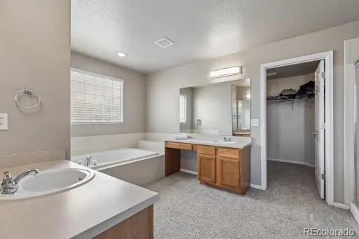 Welcome to 12013 Singing Winds Street located in the heart of Villages of Parker! This lovely 3 car garage, 2 story home has been an award-winning builder floorplan that flows wonderfully and has been loved by only 1 original owner. The foyer opens up to a elegant, vaulted staircase with beautiful hardwood flooring. The gourmet kitchen features Quartz countertops, double oven, newer appliances, large island with plenty of storage and a built-in serving bar- kitchen flows out to the covered patio with a new hot tub is an entertainer’s delight. The study with double french doors is a perfect bonus room on main level. If you are a car person, you will love the spacious oversized 3 car garage and long driveway. Gorgeous, bright & open vaulted private primary suite with bay window, spacious bathroom with oval jetted tub and separate shower, huge walk-in closet. Each bedroom has its own private bathroom attached- Perfect for guests. Brand New Goodman water heater. Newer A/C. Concreate tile roof has a 50-year warranty. On the patio is a newer Jacuzzi hot tub. HVAC and A/C all regularly maintained and serviced. Newer Samsung washer & dryer. Hardwood floors refinished beautifully. New large custom Tuff Shed on side of home for plenty extra storage. Sprinkler system in the front and back yard. Enjoy gatherings on the covered patio with Jacuzzi Hot Tub and the beautiful back yard. The pool & tennis courts are just a block away. Tucked away on a cul-de-sac loop with stunning nature & hiking trails all around. Black Bear Golf Course fairway is just across & steps away- Enjoy all the perks Parker has to offer, downtown main street Parker minutes away with plenty of restaurants, entertainment and coffee shops. Come take a tour you won’t be disappointed! Don’t forget to take a look at the attached video tour!