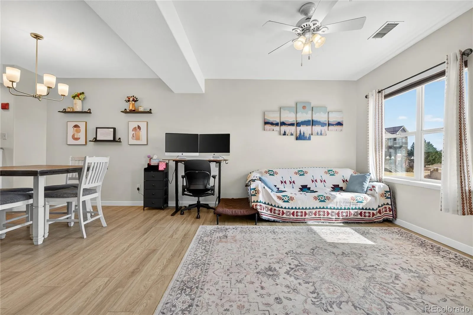 ***$5,000 Seller-Paid Concession*** Tucked away in the peaceful and desirable Sterling Hills community, this beautiful 2-bedroom, 2.5-bath townhome if the perfect plan to call home! Meticulously maintained and truly move-in ready, this home is nestled in a quiet, small community with abundant common green space—ideal for enjoying the outdoors, walking the dog, or simply relaxing while taking in the mountain views from the open space. Step inside to a bright and sunny open-concept main level designed for both everyday living and entertaining. The spacious kitchen features sleek granite countertops, modern stainless steel appliances, and ample cabinetry, flowing seamlessly into the dining and living areas. The living room overlooks peaceful open space, creating a serene backdrop year-round. Just off the kitchen, a private balcony provides the perfect spot for morning coffee or evening unwinding. Upstairs, you’ll find two generously sized bedrooms, each with its own en-suite bath and ceiling fan for added comfort. The primary suite offers a walk-in closet and its own private balcony retreat with open space views. A conveniently located upper-level laundry closet makes laundry days effortless. The attached 2-car tandem garage with new EV charger provides direct access to the lower level and offers incredible flexibility—use the second bay for storage, a home gym, or easily convert it into office space. Major updates include a new roof, gutters & new garage door (May 2025). Additional newer updates include new engineered wood flooring throughout, garage door & opener, a water purifer to the kitchen sink, and updated outlets & ceiling lights in the main living spaces, offering peace of mind for years to come. Located just a few blocks off Tower Road, this home provides easy access to DIA, Denver, Buckley AFB, and plenty of shopping and dining options. Spacious, quiet, and beautifully maintained—this Sterling Hills townhome is ready to welcome you home.