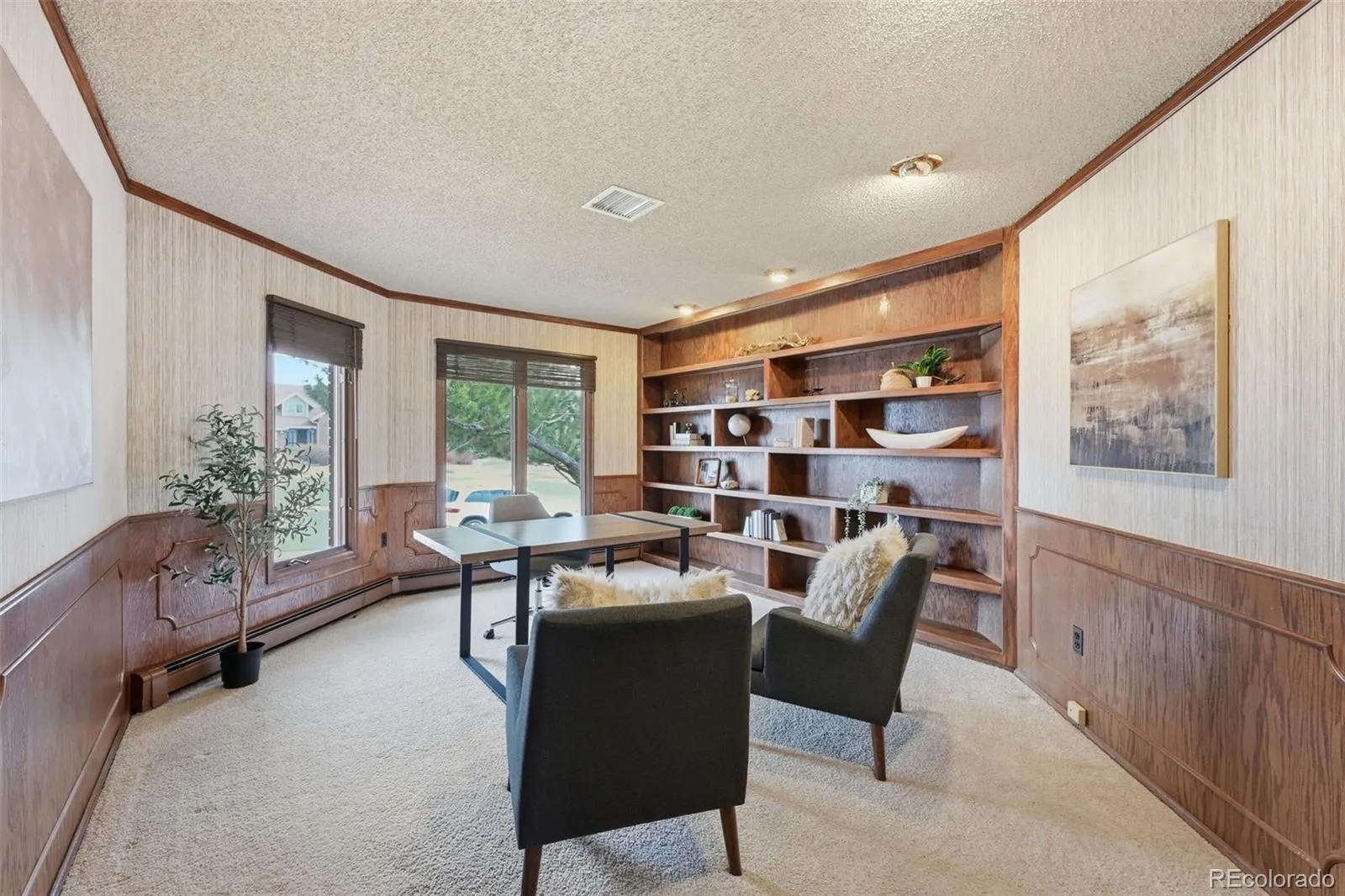 The spacious primary suite serves as a private retreat, complete with a cozy fireplace and a luxurious soaking tub. Secondary bedrooms are thoughtfully positioned away from the primary suite, offering enhanced privacy and flexibility. The dedicated office provides an ideal space for remote work, hobbies, or additional flex use.