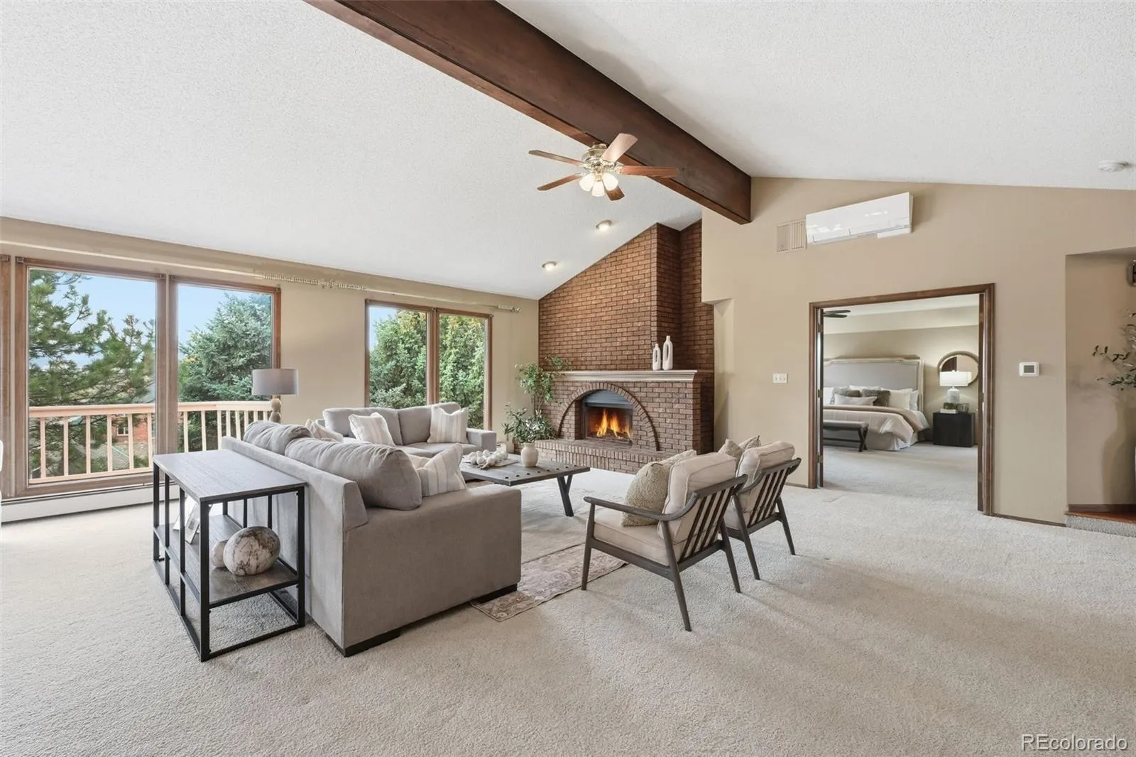 The kitchen features granite countertops and flows seamlessly into the main living areas—ideal for entertaining or comfortable everyday living. Step outside to enjoy mature landscaping, a large partially covered deck, and a private, easy-to-maintain backyard with grass and a private patio, designed to enjoy Colorado’s seasons.