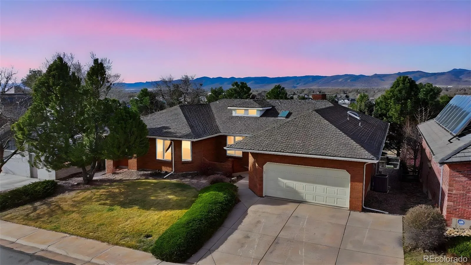 Welcome to 4181 S Yukon Way in Lakewood, located in the highly sought-after Marston Slopes community. This expansive brick-built ranch with a finished walk-out basement offers 3 bedrooms, 3 bathrooms, and a dedicated office, combining timeless construction with an exceptional open floor plan and abundant natural light. Vaulted ceilings, expansive floor-to-ceiling windows on both the main level and basement, and numerous skylights create a bright, airy atmosphere while showcasing stunning foothill views.