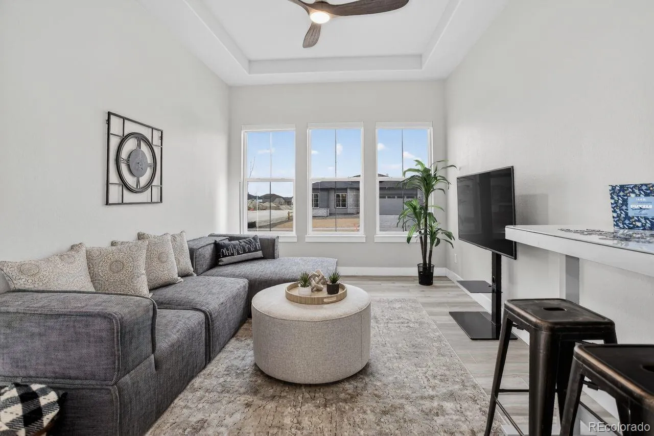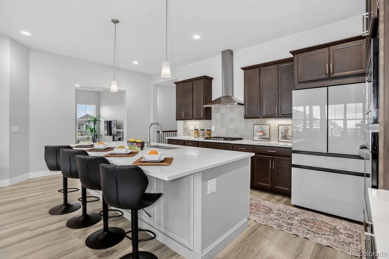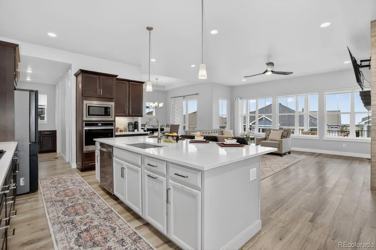 Nestled within the exclusive 55+ community of Hilltop at Inspiration, this impressive home offers a story of comfort, luxury, and beautifully crafted living. A welcoming foyer leads you into a bright, open-concept kitchen featuring quartz countertops, 42-inch self-closing cabinets, a walk-in pantry, a bonus prep area, and a large eat-at island, all flowing seamlessly into a dining room with access to the covered deck with both city and mountain views. A living room warmed by a gas fireplace provides an ideal setting for everyday living and entertaining. The main level includes a Home Office, Den, Mudroom, Laundry, and three bedrooms, two of which feature private en-suite bathrooms. The primary suite, complete with a spacious walk-in closet and a five-piece bathroom with spa-like finishes, provides a serene personal retreat. The finished basement, with its 9-foot ceilings, expands your possibilities with a generous area perfect for work, relaxation, or recreation. The bright garden-level basement features a fourth en-suite bedroom with a walk-in closet, plus there is a guest powder room. The spacious corner lot includes a professionally landscaped, fully fenced backyard with turf that invites effortless relaxation. The roomy three-car garage is equipped with an Emporia Level 2 electric vehicle charger with a dedicated 240V/50A circuit. With access to the Hilltop Club’s resort-style amenities, you will enjoy a pool, yoga studio, fitness center, pickleball and tennis courts, trails, clubs, and vibrant community events; this home delivers comfort and connection in perfect balance. Ready to experience exceptional living? Come and explore this remarkable property and make Hilltop your next chapter.