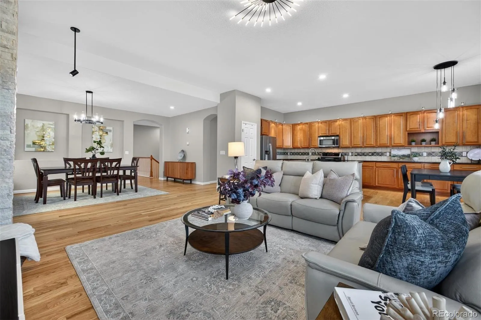 This Fallbrook Farms ranch checks boxes you didn’t even know you had, and you might just fall in love with it. With 4,118 square feet, 3 bedrooms (including a main-floor primary suite), 2.75 baths, and an oversized three-car garage, this Thornton home offers room to spread out, entertain comfortably, and even grow into over time. The curb appeal is inviting with updated porch pavers and mature landscaping. Inside, refinished hardwood floors and tinted front windows create a bright but comfortable atmosphere. The main floor’s open layout includes a formal dining room for gatherings, a private office for working from home, a full