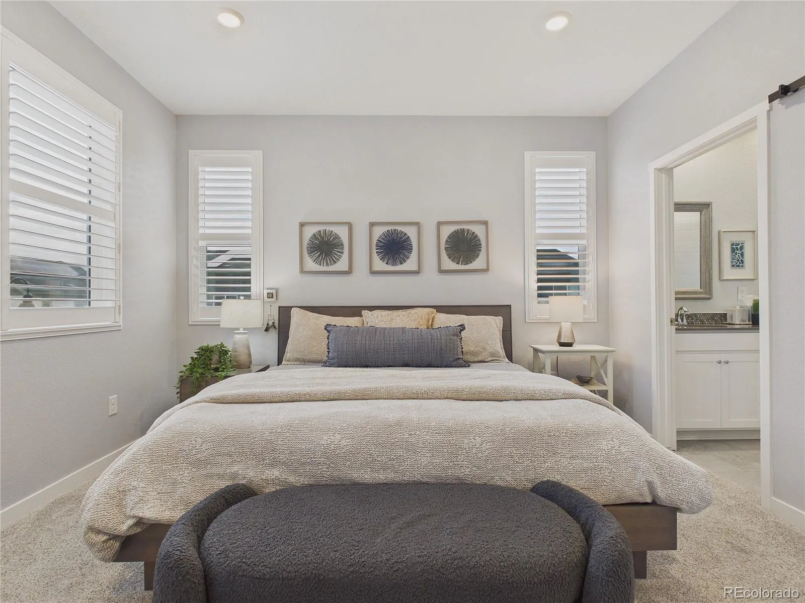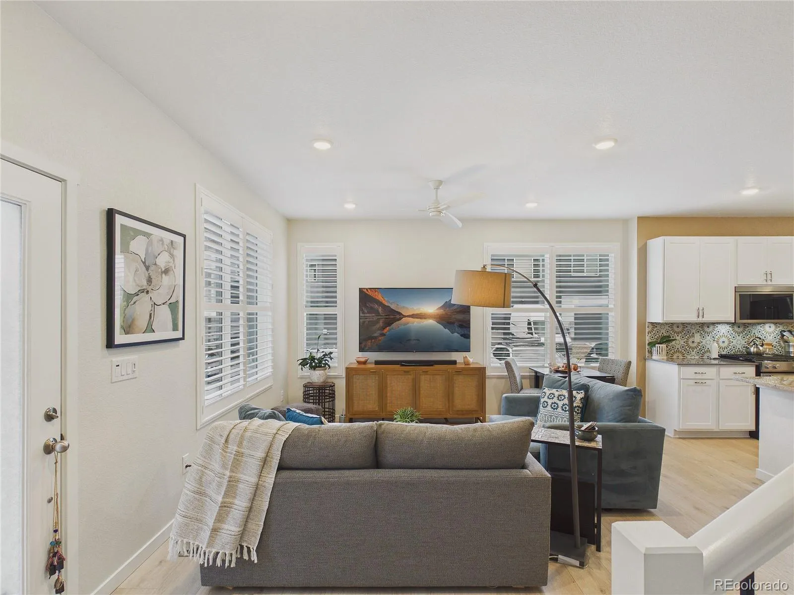 ***OPEN HOUSE, SATURDAY, MAR 7TH 11AM-1PM*** Welcome to this upgraded end-unit townhome in Whisper Village, where thoughtful updates, natural light & open-space views come together for elevated everyday living. With only one shared wall, this home offers added privacy along with sweeping views of the mountains & nearby open space from the inviting front porch. Step inside to a bright main level featuring luxury vinyl plank flooring & a seamless flow between the living & kitchen areas. The living room is equipped with a built-in TV mount & discreet cord management system for a clean, modern look. The kitchen has been extensively enhanced with abundant cabinetry, granite countertops, an extended island with an upgraded sink & bar seating—perfect for casual meals or entertaining. All appliances are new, including a gas range with a dedicated gas line. A convenient powder bath completes the main level. Upstairs, new carpet & padding on the stairs & throughout the upper level add comfort and freshness. The spacious primary suite features a walk-in closet with custom enhancements & a stylish barn door entry. The en suite bath includes dual sinks, slab quartz countertops & a new Euro-glass shower enclosure for a refined finish. Two additional bedrooms share a full Jack-and-Jill bathroom, each with its own barn door. An upstairs laundry room adds everyday convenience. Additional highlights include a new storm door, solar panels for energy efficiency & a two-car garage with recently coated & sealed flooring, overhead storage shelving & pre-wiring for a future electric vehicle charging station. Enjoy low-maintenance living with HOA-covered exterior maintenance & grounds care, giving you more time to explore the nearby recreation at Standley Lake, along with convenient access to shopping & dining. This is a rare opportunity to own a light-filled, move-in-ready home in one of Arvada’s desirable communities, combining modern upgrades, smart technology & an exceptional location!