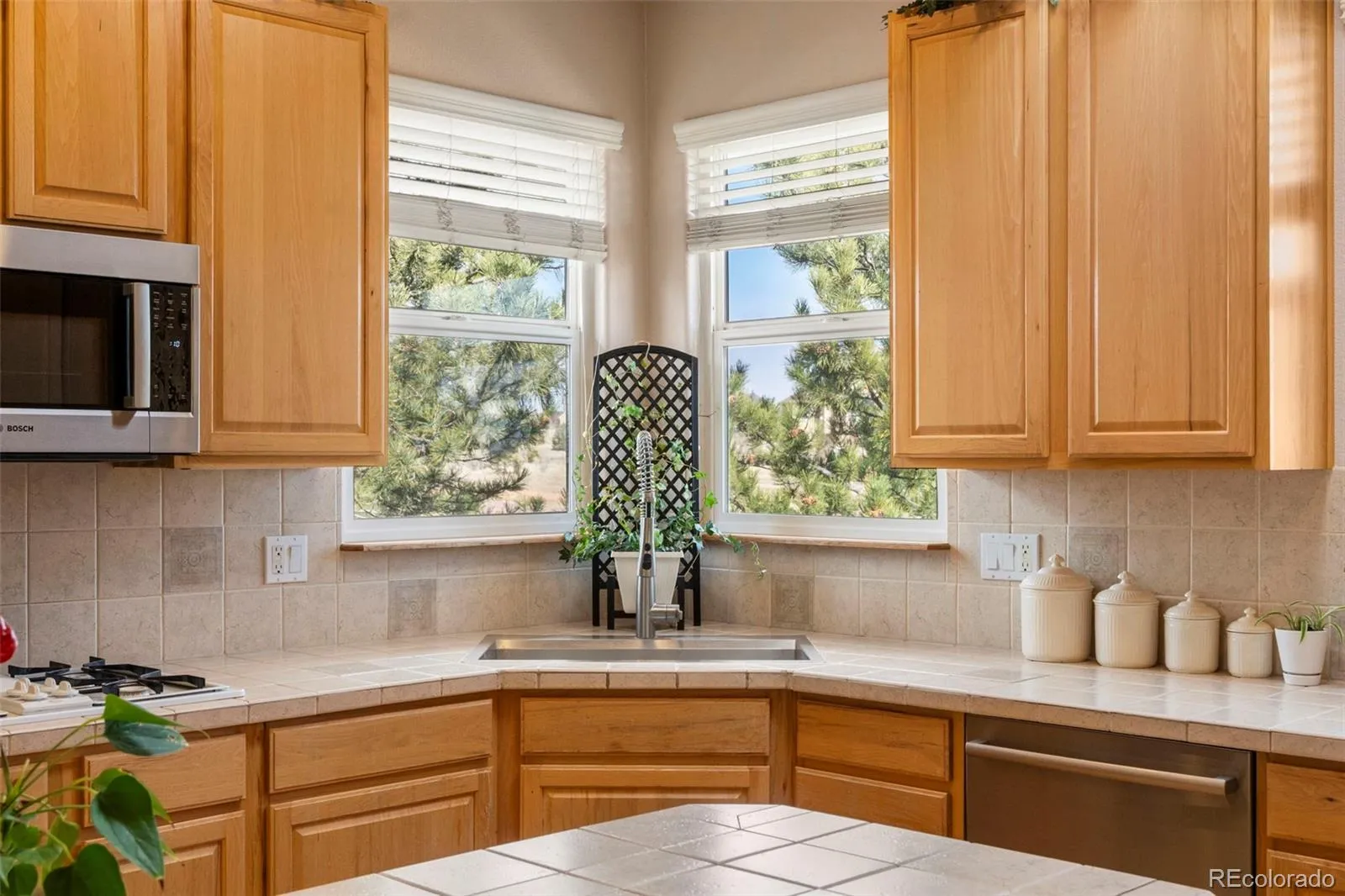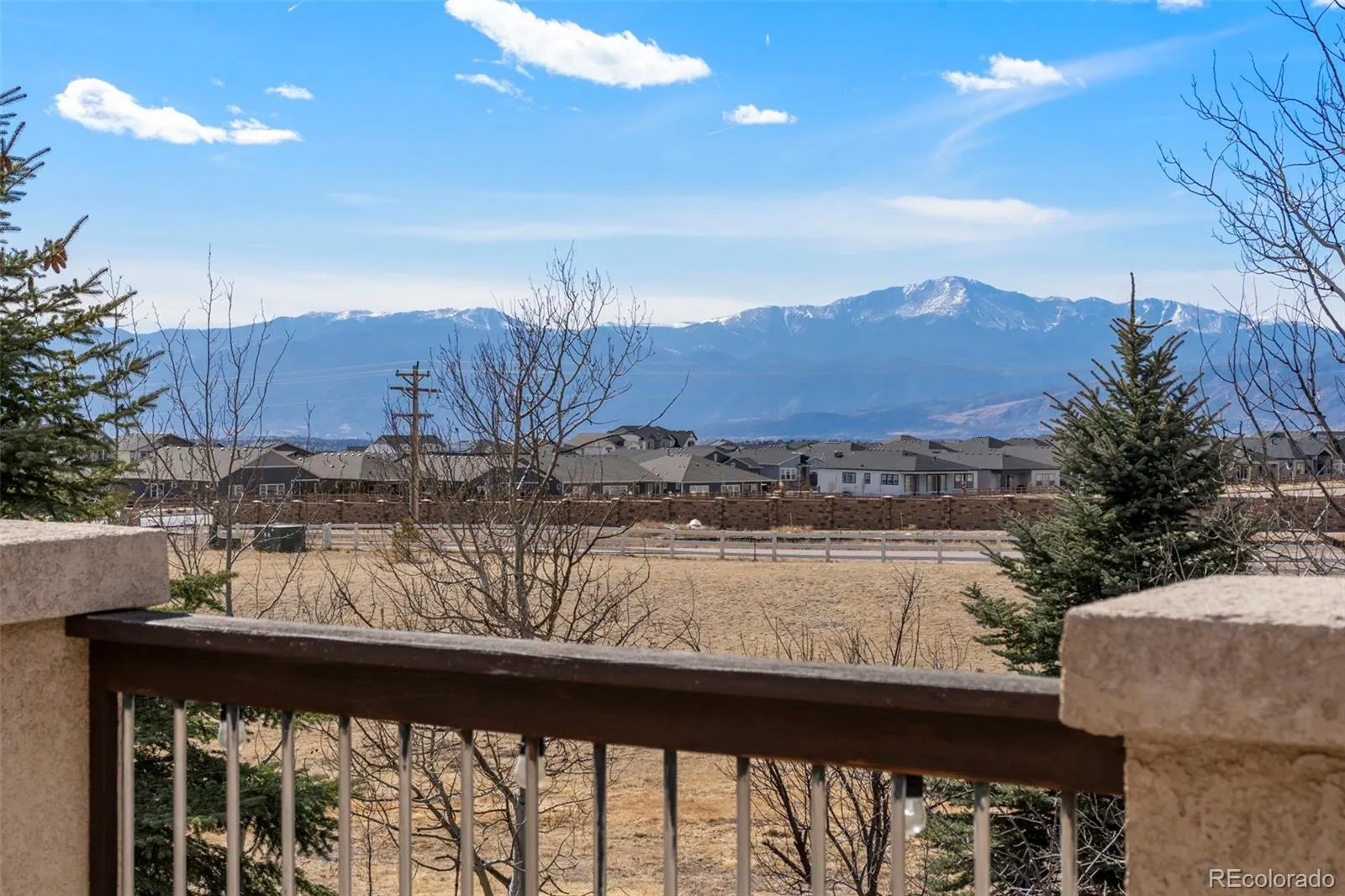 Awaken every morning to a stunning view of Pikes Peak and the Front Range. This 4,400 sq ft raised ranch offers the wonderful balance of one-level living with a large lower-level walkout, including a rec room with a bar and two additional bedrooms. As you enter this home, enjoy vaulted ceilings throughout the entire main level. The great room and dining open to a spacious deck overlooking the 2.5-acre property. Back inside, the main level includes an open kitchen with double ovens, a gas stove, a center island, and an eat-in area. The spacious primary bedroom opens onto the back deck and includes a fireplace and a walk-in closet. The main-level guest suite may also function as an in-home office. Don’t miss this opportunity to own a piece of open country living while just minutes away from ample shopping and recreation amenities.
