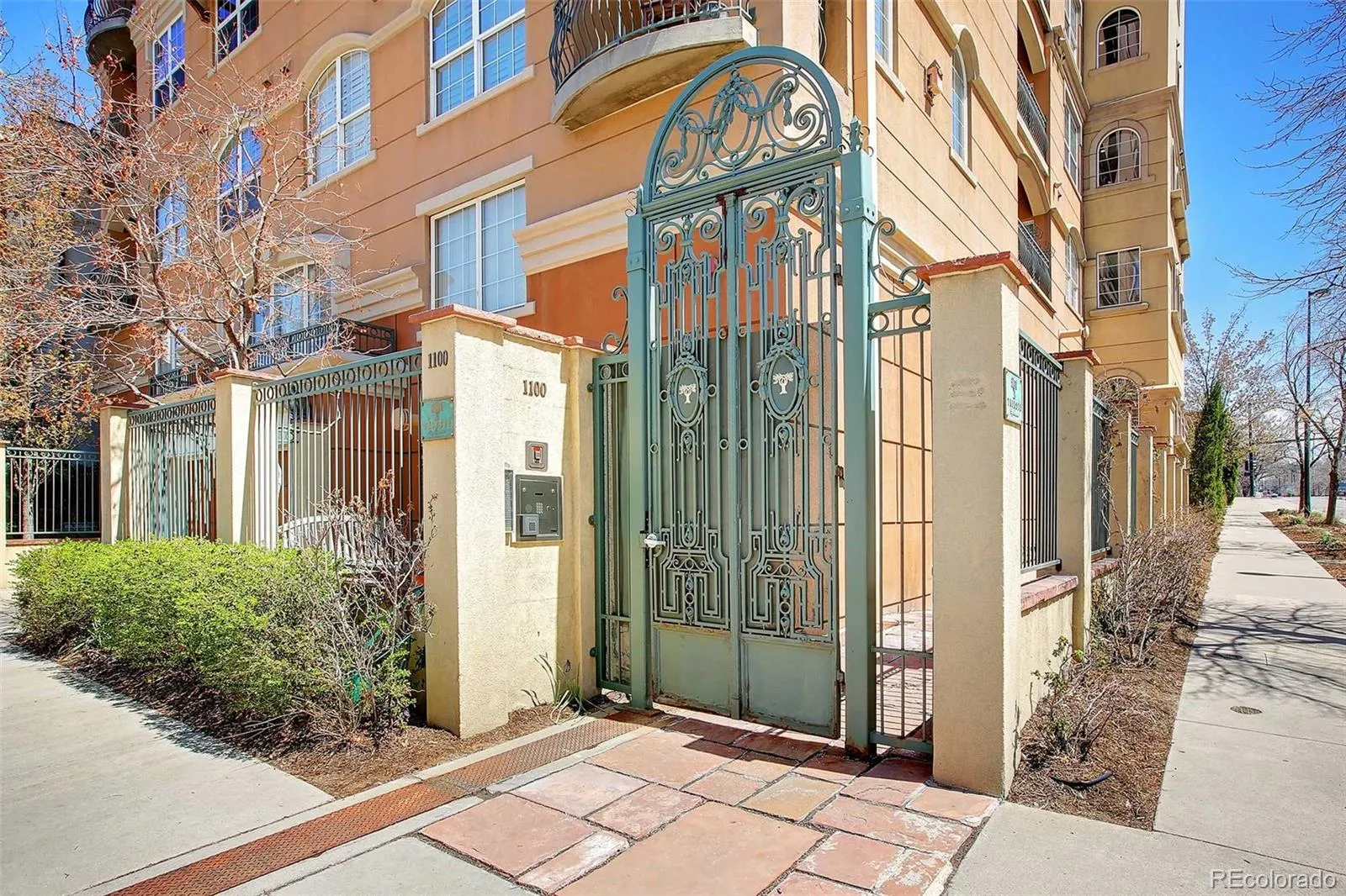 Building amenities include a rooftop deck with breathtaking views of both the Rocky Mountains and the urban landscape.