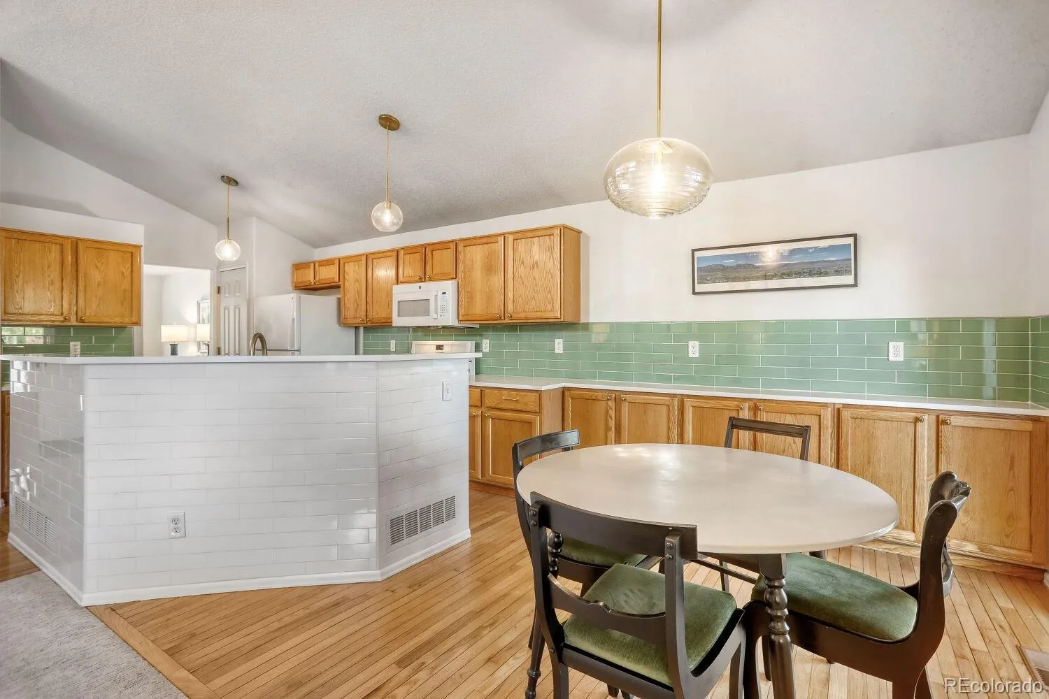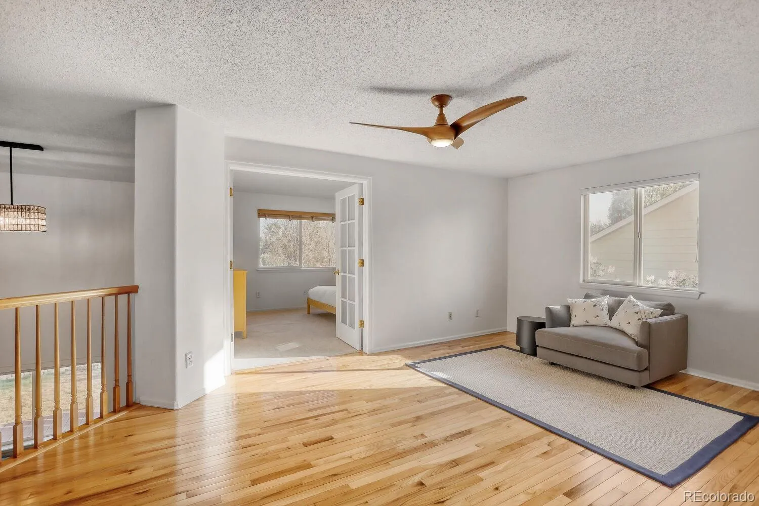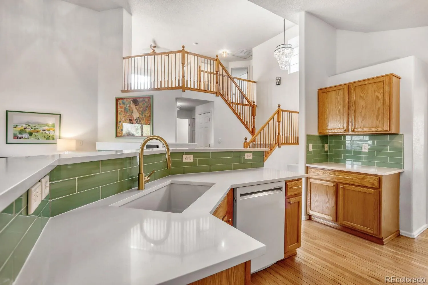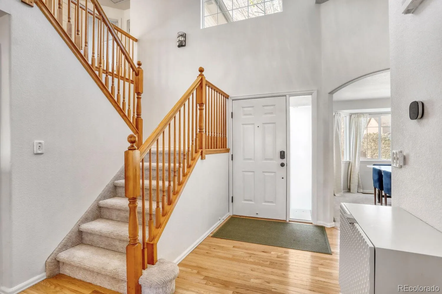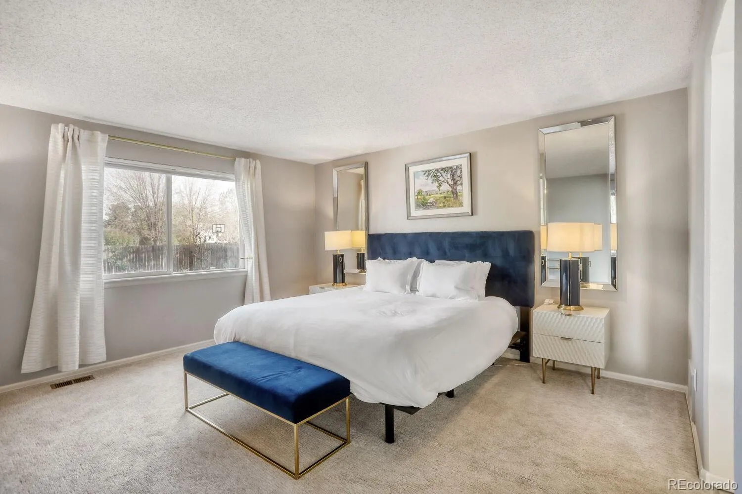 This spacious and beautiful four-bedroom, four-bath home was designed with an eye for fun and relaxation. From its custom-designed home theater and cocktail bar areas in the basement, to the main-floor primary bedroom’s Jacuzzi tub, everyone can spread out and have room to themselves. Or you can gather together under the high ceilings and chandeliers of the great room, right by the warm fireplace. Host diners in the formal dining room, and prep a feast in the cheery kitchen, with its high-end gas range, elegant white quartz countertops, and unique green tile backsplash that really pops. Between the upstairs bedrooms is a loft with hardwood floors that’s filled with natural light, perfect for reading, studying or playing. A spacious backyard patio with low maintenance perennial landscaping completes the package of an effortlessly stylish and endlessly comfortable home. Just beyond sits a serene neighborhood that boasts sweeping mountain views from the many nearby recreational trails. Erie’s charming downtown, with a cute ice cream parlor, restaurants and small shops, is just 1.5 miles away. If you love the furnishings, let us know, as they’re all for sale.