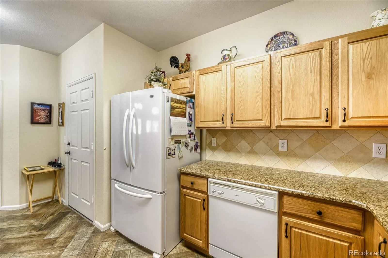 55+low maintenance living in this exclusive area of Riverwalk. A partial view of the golf course. This is truly one that will feel like home. Enjoy an extended wrap-around covered patio with views of a pond and golf course. Walk into this turnkey, upgraded condo. The kitchen has granite countertops, herringbone-tiled floors, a tiled backsplash, and plenty of counter space. The laundry room is nearby, with a washer and dryer, a storage area, and tiled floors. The second bedroom has tiled floors and a nearby remodeled full bathroom. The walnut flooring is beautiful, and the mahogany plantation shutters. The office is easily accessible from the living room with sliding doors to a covered patio. The primary bedroom has a walk-in closet and upgraded full bathroom, plus a sliding door to a private patio. Underground parking is provided with a storage unit. A lobby in the building for you and your guests to enjoy. This community offers a clubhouse of 12000 sq. ft. community facility- a spa-billiards room – an outdoor pool, a sauna and hot tub, banquet rooms, a fully equipped fitness facility, a charming lounge, and monthly activities. A distinctive lifestyle community that’s maintenance-free. Walking distance to restaurants, the Platte River, stores, and old town Littleton, light rail, and centrally located to other areas.