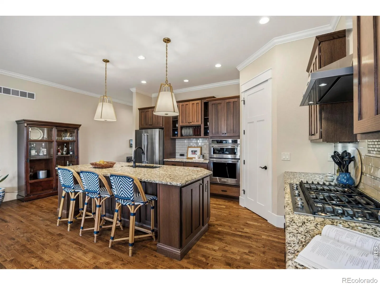 Luxury Living in Murano at Highland Meadows – Exceptional Golf Course Community Home. Welcome to this stunning, lower maintenance residence in the Murano enclave built by Classic Custom Builders. Perfectly positioned to offer both luxury and comfort, this 4-bedroom, 3-bathroom home features over 3,500 square feet of impeccably designed living space. Step inside to discover a bright, open-concept, floor plan characterized by beautiful finishes like rich oak flooring, 8′ craftsman style doors, beautiful cabinetry, and thoughtful finishes throughout. The heart of the home is the chef’s kitchen, which boasts an expansive island with plentiful storage on two sides, quality KitchenAid appliances, beautiful granite countertops, and timeless features making it an entertainer’s dream. The living room is anchored by a cozy fireplace and flows seamlessly into the dining area, perfect for hosting intimate dinners or large gatherings. The main level includes a tranquil primary suite featuring a classically designed bathroom and a massive walk-in closet. The main level also features a generously sized laundry room, second bedroom or office, full bathroom, and convenient mud room. The fully finished basement adds incredible versatility, offering large recreation room, two more bedrooms, a separate laundry room, a home gym and plenty of additional storage. Oversized 3-car tandem garage with several thoughtful inclusions. Outside, enjoy the peaceful Colorado lifestyle in your professionally landscaped yard. Whether you’re relaxing on the covered patio or under the pergola or taking in the morning views from the front porch, the outdoor space is a chef’s kiss of Colorado living. Enjoy resort-style living with access to the community’s top-tier amenities, including the clubhouse, pool, and tennis courts. Located just minutes from premier golf, shopping, and dining, this home offers the perfect balance of convenience and serenity.