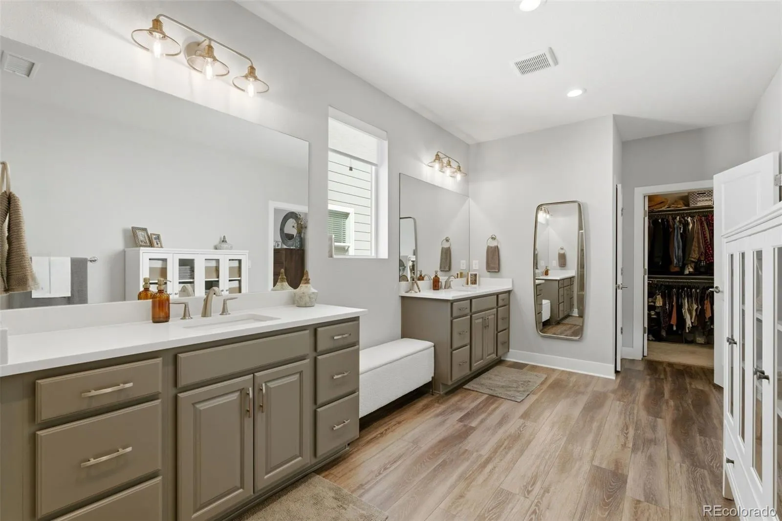 Exquisitely designed and upgraded new home in the prestigious Montaine community with miles of trails through open space and native elk that will leave you breathless. This brand new home built by Toll Brothers has been thoughtfully upgraded by the owners with timeless design aesthetic. Designer Hinkley lighting throughout, Graber window treatments, a brand new expanded patio, professional polyaspartic garage floor coating, new and updated extended concrete patio, matching stone work on the entry way, and three additional American Sentry Linden trees for fall colors. Walk in and experience the natural light pouring into this two-story great room. Your entire main floor is an entertainers dream with an enlarged kitchen island, striking two story tiled fireplace, leathered black pearl granite counters, and textured porcelain backsplash. The main floor also boasts a private office and walk-in pantry. The modern handrail brings you upstairs where you’ll find the generously sized primary suite. The large primary bath hosts split vanities, designer lighting, large shower with floor to ceiling tile and a walk-in closet. Upstairs also has the laundry, two other bedrooms, and another upgraded full bathroom. The garage is three car tandem and extra deep to accommodate larger vehicles. The professionally coated garage floor will withstand anything you throw at it. An unfinished basement rounds this house out with space for more bedrooms, a rough-in for a bathroom and/or wet bar, and more living space. The backyard is spacious and inviting with a covered patio to relax on, extended concrete patio for more usable space, and a flat grassy area to play in. The community center has a gym, pool, park, pickleball courts, tennis courts, and more. Surprisingly this home is not staged, the owners are meticulous and have taken beyond excellent care inside and out. Much of the furniture and decor is negotiable. A new home but better, you must see this in person!