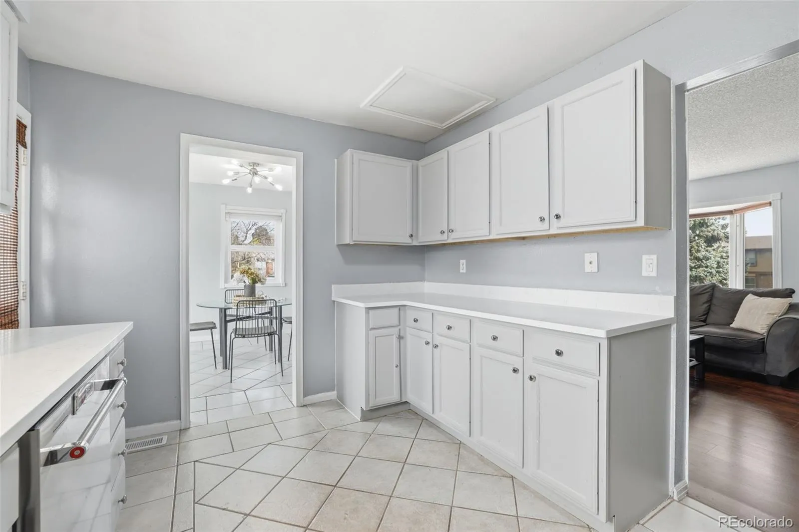 Welcome home to this charming 4 bedroom, 3 bathroom tri-level perfectly situated on a quiet cul-de-sac with direct access to the greenbelt. The main living space is filled with natural light and features laminate flooring throughout, creating a warm and inviting place to gather. The living room offers plenty of space for entertaining and centers around a cozy fireplace, making it the perfect spot to relax year-round. The remodeled kitchen features stainless steel appliances, granite countertops, and generous counter space, with easy access to the dining area—ideal for hosting friends and family. From here you’ll love the quick access to the deck and backyard, perfect for enjoying beautiful Colorado summer evenings. Upstairs you’ll find two guest bedrooms and a remodeled full bathroom, along with the primary suite featuring a large built-in closet and private bathroom. The lower level offers an additional family room that can easily become a second living area, playroom, office, or flex space. This level also includes the fourth bedroom and an additional guest bathroom, offering great separation and privacy for guests or family. Conveniently located close to shopping, restaurants, parks, and everyday amenities, this home offers comfort, flexibility, and a fantastic location—making it a perfect place to call home.