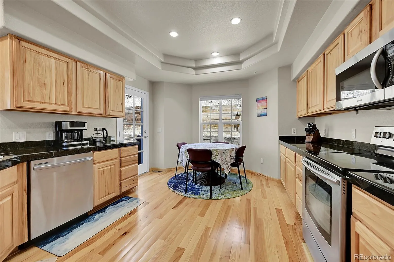 The kitchen blends beauty and function with granite countertops, hickory cabinetry, stainless appliances, a walk-in pantry, and eat-in space. Just outside, a private sundeck with hot tub is perfect for relaxing under the stars. A formal dining room sits adjacent for easy entertaining.