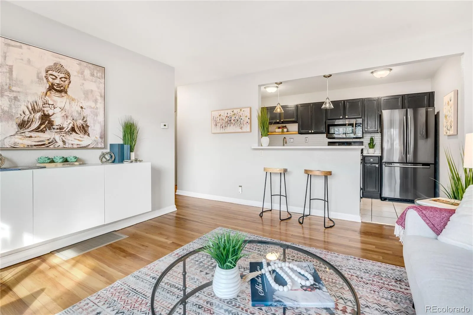 Welcome to one of Denver’s best-kept secrets within the quiet and quaint neighborhood of Potter Highlands. With easy access to downtown Denver and the mountains, the location is unbeatable, just a few blocks away from the best of LoHi and the Highlands with all the fun restaurants, dining, coffee, wellness studios, boutiques, bars, and public transportation. Tucked into the heart of this historic neighborhood, this beautifully updated one-bedroom, one-bathroom row home lives and feels like a single-family home. Enter the private 200 square foot fenced patio with a little patch of grass perfect for pets, gardening, relaxing or outdoor entertaining. The open living room is anchored by a large west-facing window that floods the space with natural light. Gleaming hardwood floors and sunny floor plan make this place feel elegant, cozy, and inviting. The kitchen is a true standout, featuring quartz countertops, a gas range, black stainless-steel appliances including a newer dishwasher, and a breakfast bar for casual seating all open to the living room, making it ideal for entertaining. It feels so much larger than the square footage suggests as it has zero wasted space. Storage abounds with three big closets, a full sealed crawl space, and an additional large storage locker on the south side of the building. A front-loading washer and dryer are included, along with reserved parking. Additional highlights include central A/C, a new roof from 2025, newer windows and water heater. The level of quality and updates is simply hard to find at this price point in this neighborhood, and it is truly charming, peaceful easy living. The super low HOA of just $250/month is super attractive, and dogs and cats are welcome! Whether you’re a first-time buyer, savvy investor, or looking for a lock-and-leave lifestyle, this gem in one of Denver’s most beloved neighborhoods checks every box.