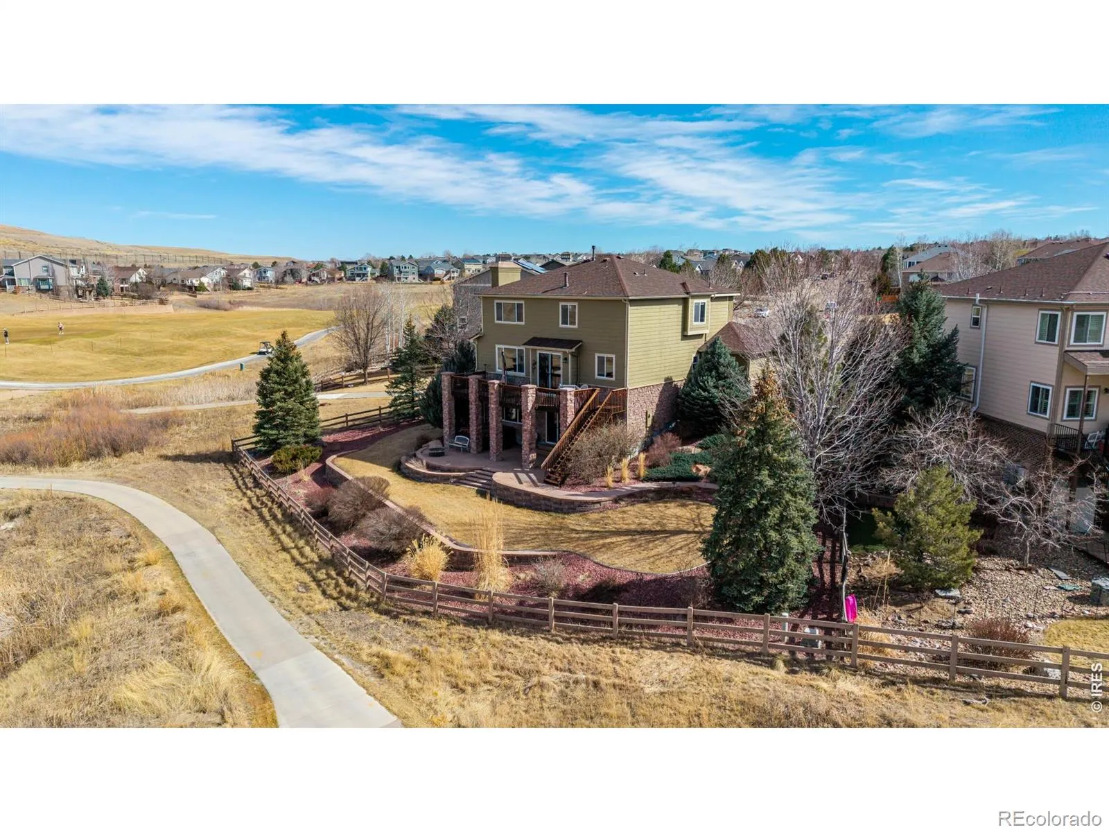 Welcome to this exceptional 5-bedroom, 4-bath home in the highly sought-after Vista Ridge community-perfectly positioned at the end corner of a quiet cul-de-sac and backing to the 16th tee box of Colorado National Golf Course. With gorgeous, unobstructed mountain views as your backdrop, this home offers a setting that’s truly hard to find. Situated on a huge quarter-acre lot, the property provides space, privacy, and incredible outdoor living. Enjoy evenings on the lovely, oversized patio, where panoramic views and open skies create the perfect atmosphere for relaxing or entertaining. Inside, the open floor plan is light, bright, and designed for both comfort and connection. The living room features vaulted ceilings, creating an airy, dramatic feel while enhancing the natural light throughout the main level. The spacious living areas flow seamlessly into the kitchen and dining spaces, making the home ideal for everyday living and gatherings alike. The newly finished walkout basement expands your living space beautifully, featuring a dedicated media room and a stylish wet bar, perfect for movie nights, game days, or hosting friends. With five generously sized bedrooms and four bathrooms, there’s flexibility for guests or work-from-home needs. Additional highlights include a 3-car garage with ample storage and an unbeatable location within walking distance to parks, two community pools, and miles of scenic walking and biking trails. This is Colorado living at its best-golf course frontage, mountain views, and a prime lot in one of the area’s most desirable neighborhoods.