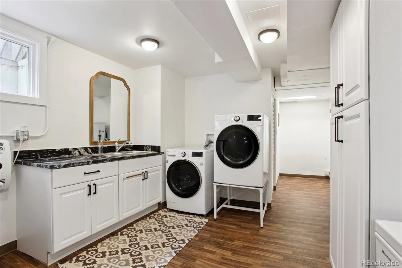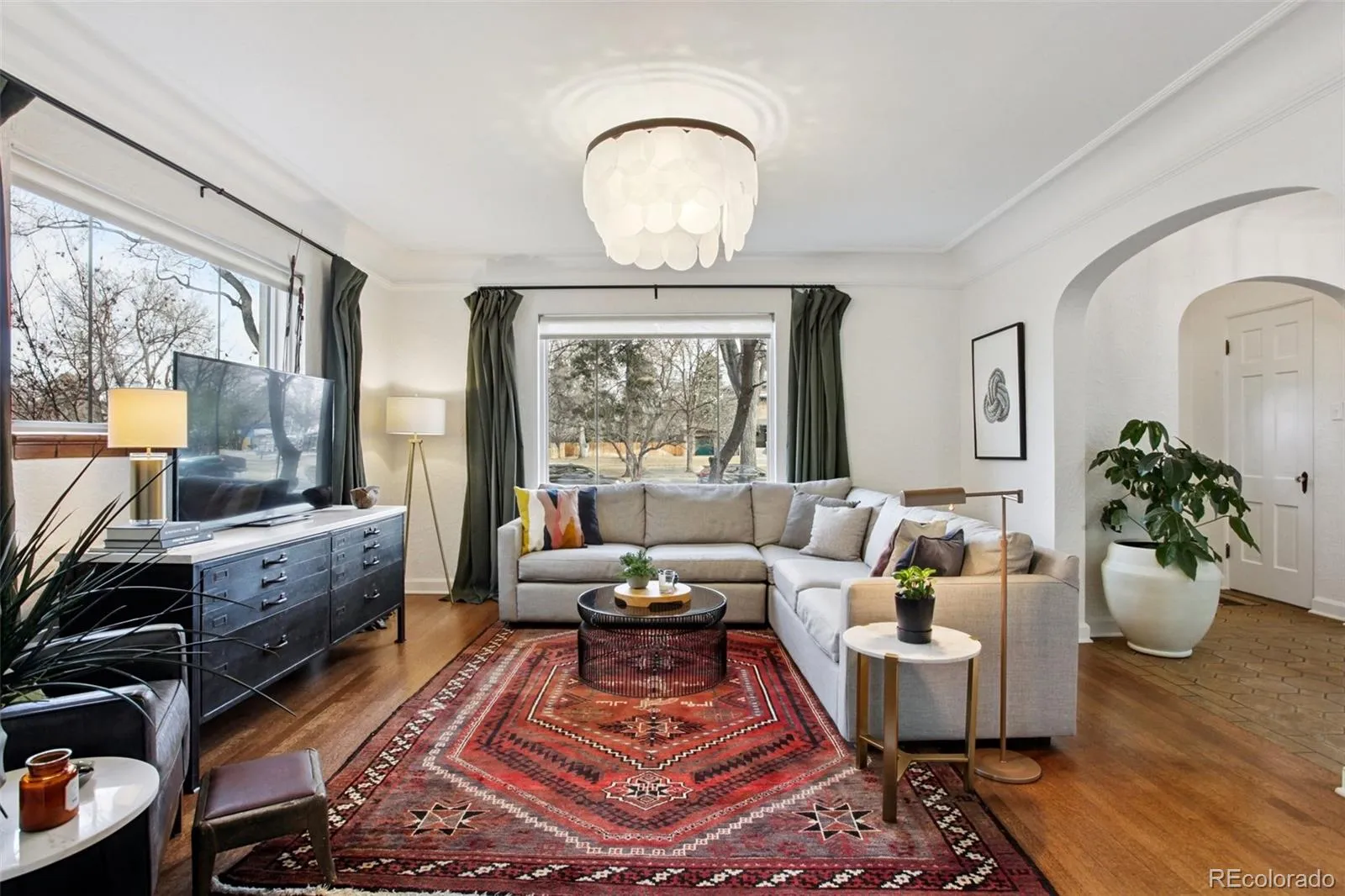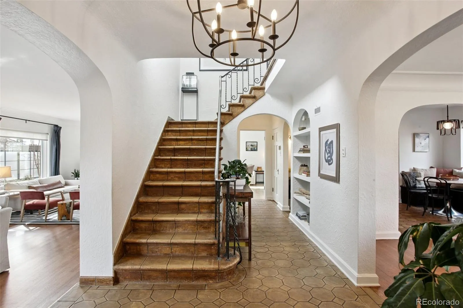 You don’t want to miss this luxurious Art Moderne architectural beauty in coveted South Park Hill! This exceptional 5-bed/3.5-bath home offers more than 3,600 sqft of refined living space and underwent a $500,000+ renovation in 2022–2023 by Chris George Interiors, blending preserved original details w/elevated modern finishes. Furnishings at property are negotiable. On the main floor, you’re welcomed by an elegant foyer w/its original staircase + custom terra cotta tile, complemented by original quarter-sawn oak floors throughout. The front living room flows into a breakfast nook and stunning chef’s kitchen featuring a custom white oak display cabinet, granite counters, custom backsplash, handmade tile floors, luxury Big Chill/Bluestar appliances, and two pantries. The south side offers a spacious great room for entertaining, plus a 1/2 bath w/adjoining 5th bedroom / office space. The expansive primary suite includes California Closets + a spa-like bath wrapped in Carrara marble and handmade Zellige tile, complete with a steam tub/shower for two. Mountain views await from the rooftop deck! Two additional bedrooms compliment the upper level along with a secondary bathroom that includes similar quality finishes as the primary. The lower level offers flexibility with a large family room, 4th bedroom w/en-suite bath, wall heaters to keep the space cozy, and a spacious laundry room w/the original walk-in vault. The private backyard boasts a water feature, dining area, multiple seating spaces, garden sink, and access to the 2-car detached garage. Major upgrades completed during the renovation include all-new windows, roof, and HVAC system, as well as updated plumbing, main waterline, PVC sewer line, electrical, and radon abatement system. Easy access to Park Hill amenities, just 2 miles from City Park, the Denver Zoo, and the Museum of Nature & Science, plus a short drive to Downtown Denver. This is a rare opportunity to own a truly distinctive South Park Hill showpiece!