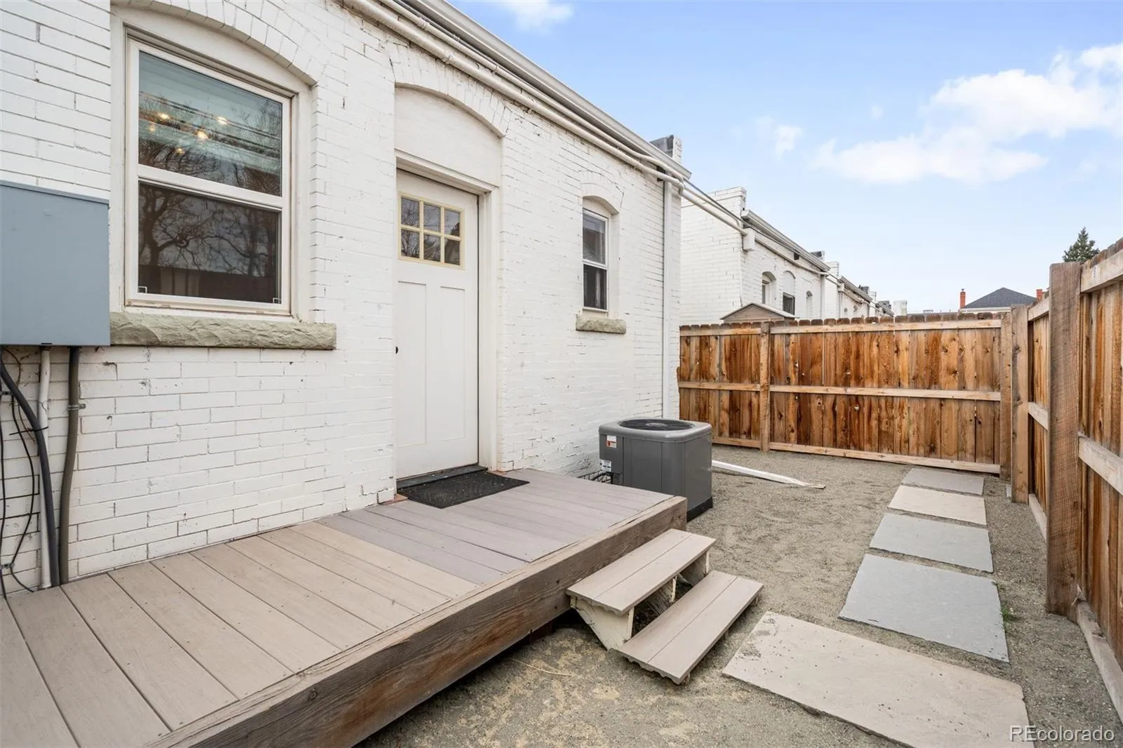 Historic 2-bedroom, 1-bath end-unit rowhome with NO HOA in Denver’s Speer neighborhood, offering an exceptionally convenient location near South Broadway and Cherry Creek. Positioned within approximately 0.2–0.5 miles of popular dining including Postino, The Hornet, Denver Biscuit Company, and Angelo’s Taverna, this home delivers immediate access to one of Denver’s most vibrant areas. Inside, high ceilings and abundant natural light highlight an efficient main-level layout with both bedrooms on the same floor. The kitchen is thoughtfully updated with quartz countertops, newer stainless steel appliances, and a new range hood. The bathroom features a classic claw foot tub, blending timeless character with everyday functionality. Central AC, installed in 2022, provides year-round comfort. Outdoor spaces include a covered front porch and a private, fenced backyard—ideal for relaxing or entertaining. The unfinished basement offers generous storage along with a washer and dryer. Extensive improvements completed between 2021–2024 include new gutters, windows, fencing, interior and exterior paint, window treatments, security system, radon mitigation system, furnace, water heater, full sewer line replacement to the city main, and central AC. Deeded off-street parking is located directly behind the home. With convenient access to Speer Blvd, I-25, and 6th Ave, this home combines historic charm, modern updates, and an exceptionally convenient central Denver location.