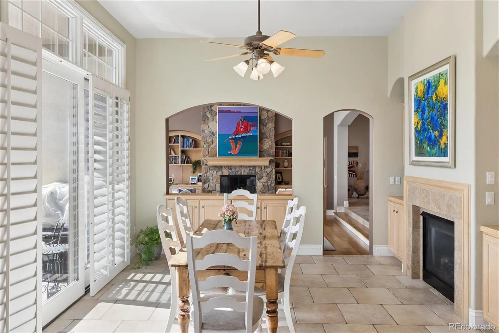 Located in the gated Fox Haven Estates on a private cul-de-sac, this immaculate ranch-style home offers refined yet inviting living. Designed for elegant entertaining and everyday comfort, it blends luxury finishes with warm, welcoming spaces throughout. Custom stone flooring and rich hardwoods greet you at the entry. The living room, anchored by a dramatic stone fireplace, creates an intimate gathering space. The hearth kitchen is a chef’s dream with a premium Wolf gas cooktop, generous prep areas, and a Butler’s pantry, all flowing into an expansive dining room with a double-sided fireplace, perfect for memorable gatherings. The private primary suite is a serene retreat featuring radiant heated floors in the en suite bath, a seamless glass shower, and dual walk-in closets. The study with its own fireplace and French glass doors provides an ideal home office or library. The full walkout lower level expands the home’s versatility with a spacious great room and fireplace, art or music studio, pool table area, and wine cellar. Two additional bedrooms with en suite baths ensure guest comfort and privacy, while a fourth bedroom offers flexibility as a theater, gym, or guest suite. Plantation shutters throughout add the finishing touch. Outdoors, enjoy a gardener’s paradise with raised planting beds, seasonal blooms, mature trees, backing to private space creating a tranquil oasis. The rear deck off the kitchen, complete with gas grill and retractable awning, is perfect for morning coffee or evening dining. Minutes from local amenities and offering optional membership to the Normandy Estates Pool and Tennis Club, this Fox Haven residence delivers an exceptional lifestyle in a secure, sought-after community.