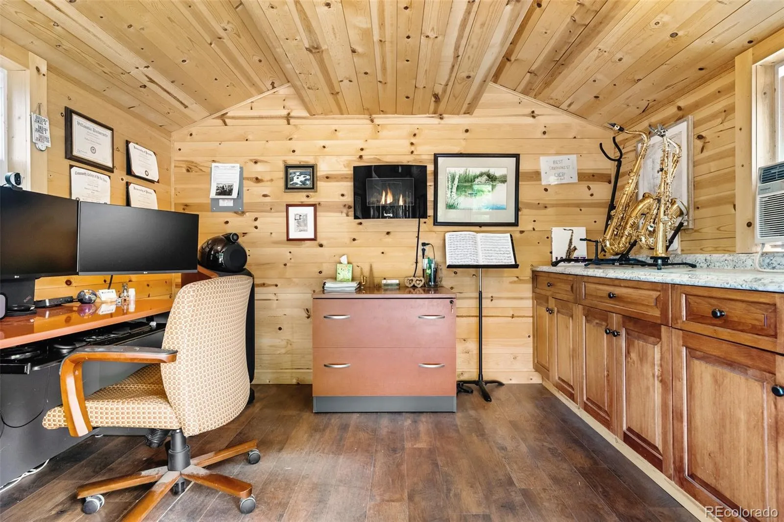 Tucked within the serene enclave of Carmody Heights, this expansive home offers exceptional versatility and character across a thoughtfully designed floor plan. Perfect for multi-generational living, this residence features flexible spaces and main floor primary suite. In addition, there is an upper-level one bedroom apartment with Short Term Rental License (STR) license with a kitchenette and a private balcony. A studio with a separate entrance and fenced yard is ideal for a private guest suite or mother-in-law suite. Vaulted tongue-and-groove ceilings, custom woodwork and unique cabinetry inspire warmth and charm throughout. Large windows draw streams of natural light into a welcoming living room. The gourmet kitchen is equipped with high-end appliances, a large island and a built-in breakfast bar opening to a spacious dining room. Soak in picturesque mountain views from the front yard and enjoy a professionally landscaped backyard complete with a covered patio. As a bonus, there is a shed in the back yard that is ideal for a home office or den. A recently paved driveway and attached two-car garage add convenience to this rare and accommodating retreat. Quick access to Red Rocks, I-70, 6th Ave, hiking, mountain biking and so much more.