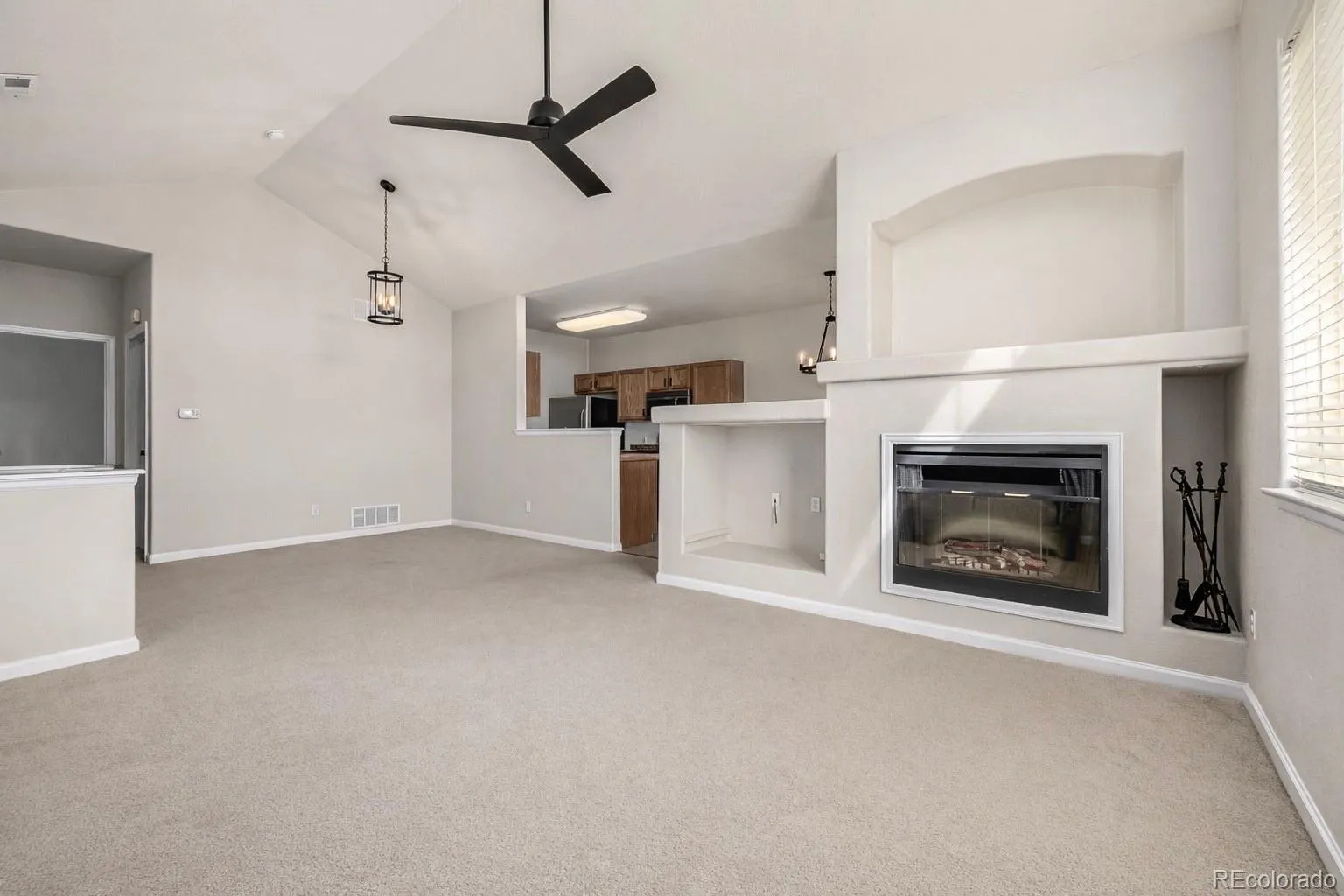 The open floor plan and 9-foot ceilings make the space feel light and airy, with natural sunlight pouring in like it pays rent. The cozy living room fireplace is perfect for chilly Colorado evenings or setting the mood for a relaxing night in. ??