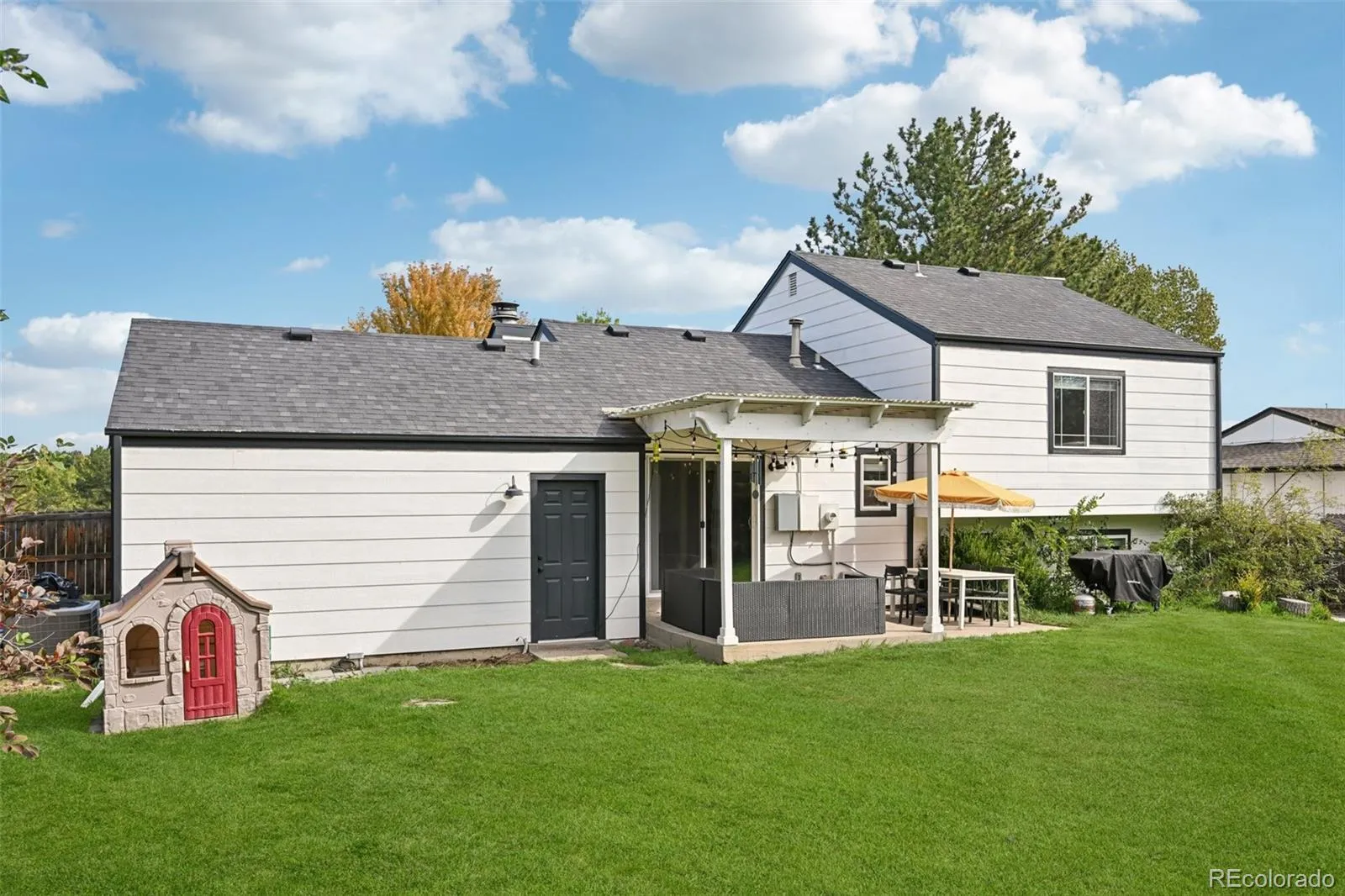 Designed for modern living, this reimagined residence welcomes you with vaulted ceilings, beautiful laminate hardwood flooring, and a warm wood-burning fireplace accented by custom millwork. The open-concept family and dining areas create an inviting atmosphere for everyday living and effortless entertaining, while a large glass slider seamlessly connects indoor and outdoor spaces. Step outside to an expansive, private backyard framed by mature trees, offering the perfect setting for summer gatherings, play, or peaceful evenings under the Colorado sky. The updated kitchen blends style and functionality with quartz countertops, shaker-style white cabinetry, stainless steel appliances, and a pantry for additional storage — ideal for both daily living and hosting. A standout feature is the detached 10×18 climate-controlled flex space. Whether used as a home office, gym, studio, or creative retreat, this versatile bonus area adds exceptional value and flexibility rarely found at this price point. The primary suite provides a relaxing retreat with newer carpet and a fully renovated four-piece ensuite bath. An additional upper-level bedroom offers flexibility for a home office or playroom, while the lower level includes two generously sized bedrooms and an updated bathroom with integrated laundry. With over 1,500+ square feet in the main home plus an additional 180-square-foot finished bonus structure, this move-in-ready property also features an attached two-car garage, newer exterior paint, and low-maintenance vinyl siding. Located just minutes from award-winning Littleton Public Schools, High Line Canal trails, neighborhood parks, and shopping and dining at The Streets at SouthGlenn, this home delivers the ideal blend of comfort, convenience, and lifestyle.
